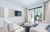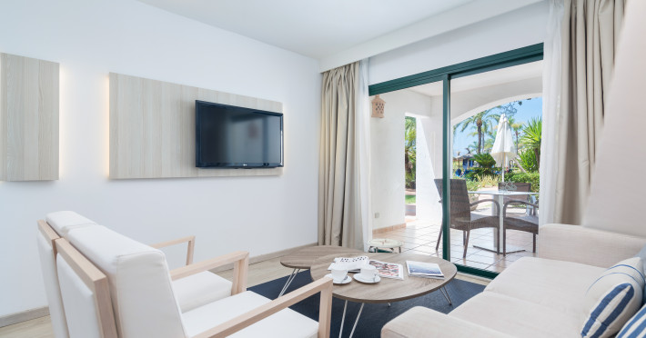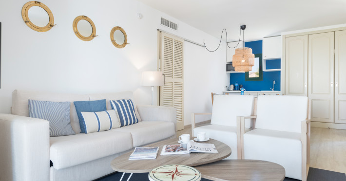 About 50 m from a public sandy beach is located the aparthotel Botel Alcudiamar. The nearest restaurants and bars can be found within 100 m. The old town is around 3 km away. The nearest shops you can reach within around 500 m. There is a 24h shuttle service between the hotel and the airport (for a fee) 24h a day. The beach is awarded a blue flag. Here, there are cushions for a fee available. Near the beach there is a promenade where you can go for a stroll. The air-conditioned hotel is equipped with a 24h reception (check-in is possible around the clock), Wi-Fi, internet access, a lift, a jacuzzi, showers and changing rooms, a first aid kit, parking spaces (limited and for a fee) as well as a TV lounge with satellite TV. In the outdoor area you will find a garden as well as a supervised pool, where sun loungers, sun umbrellas and pool towels are available for free. Furthermore, you can relax outdoors on a terrace. Inside the hotel you can use a heated indoor pool. You can store your valuables in the safe (extra fee), and your luggage in the hotel`s storage room. In addition, the hotel Botel Alcudiamar is video-monitored 24h a day. For your entertainment, the hotel offers a library/reading room. For very young guests, cots can also be provided. There is also a laundry service. For your comfort, in addition to the concierge service the hotel page will ensure you are looked after. If necessary, you can contact the medical centre at any time (for a fee). The energy supply is 220 Volts. If you want to explore the holiday region, you can use the car and motorbike rental service close to the hotel (extra fee). In addition, the hotel sells tickets for excursions. In your hotel, a lot of focus is placed on sustainability. This includes the hotel`s own recycling bins, the provision of soap and shampoo dispensers and environmentally-friendly cleaning. That is why the hotel Botel Alcudiamar was also awarded a sustainability certificate. Euro/Master Card and Visa are accepted as means of payment. Due to its barrier-free facilities , such as barrier-free entrances, wheelchair accessible rooms, a wheelchair accessible lift and wheelchair-accessible bathrooms, the hotel is also suitable for wheelchair users. Catering As catering services the hotel offers half board and breakfast only. Breakfast is offered from the buffet. Dinner is also served as a buffet (extras on request). Half board includes breakfast and dinner. For the meals, there are a restaurant with terrace (gluten-free dishes) and a bar as well as the cafeteria. The drinks menu of the hotel includes water, soft drinks, coffee and tea, beer, wine and 24h international alcoholic beverages. Appropriate clothing is required for lunch and dinner. Distances
