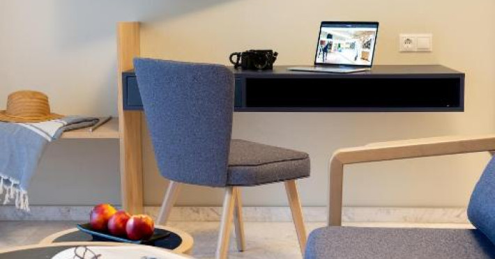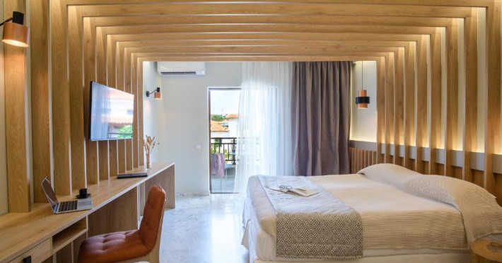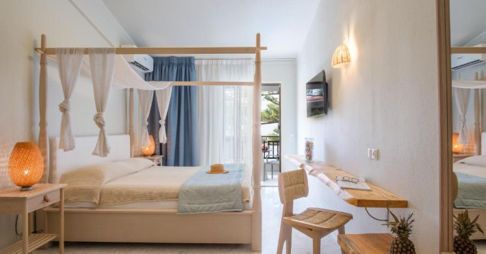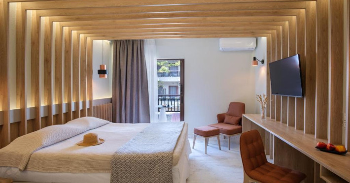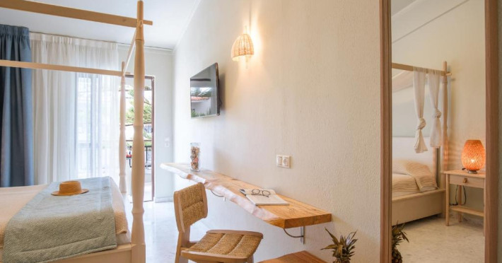 Toate camerele de la Hotelul Bourtzi sunt izolate fonic, proiectate eficient, cu amenajări moderne și băi elegante. Majoritatea camerelor oferă balcon cu vedere spre piscină.