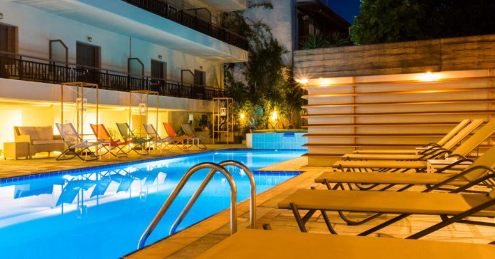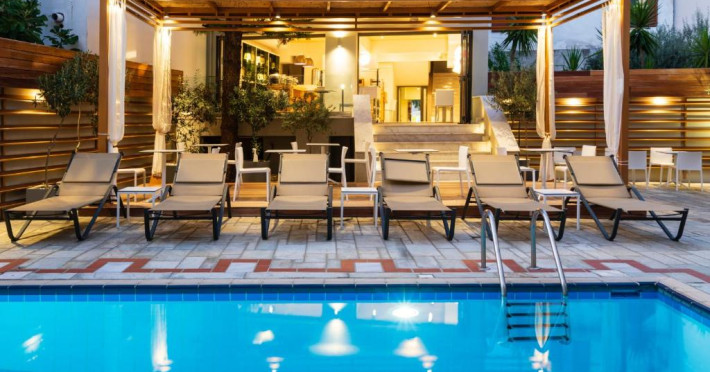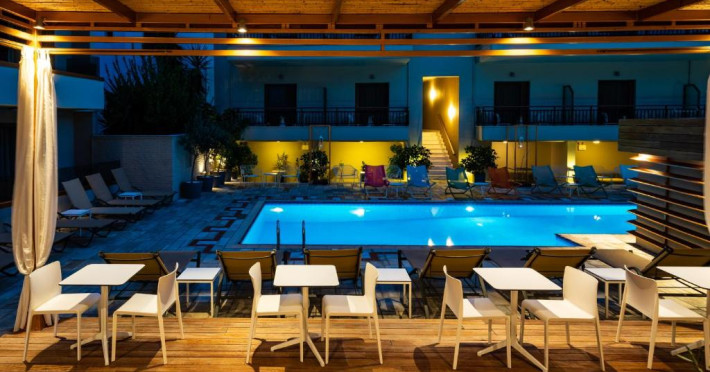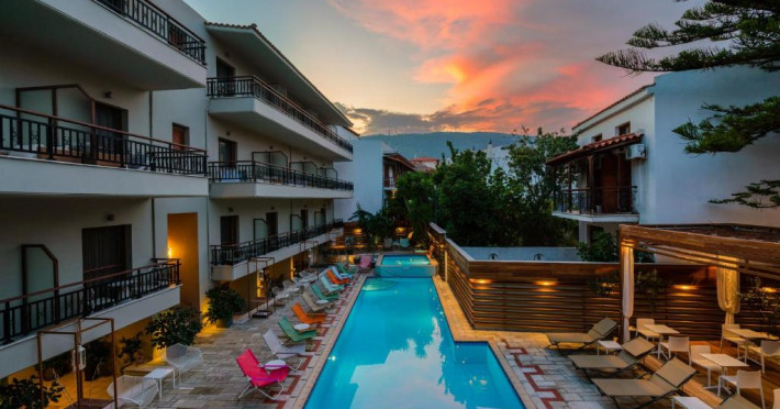 Situat chiar la capătul străzii principale din orașul Skiathos, acest hotel de 4 stele oferă o curte incantătoare, cu piscină și terasă cu șezlonguri. Camerele minime au paturi king-size și TV cu ecran plat.