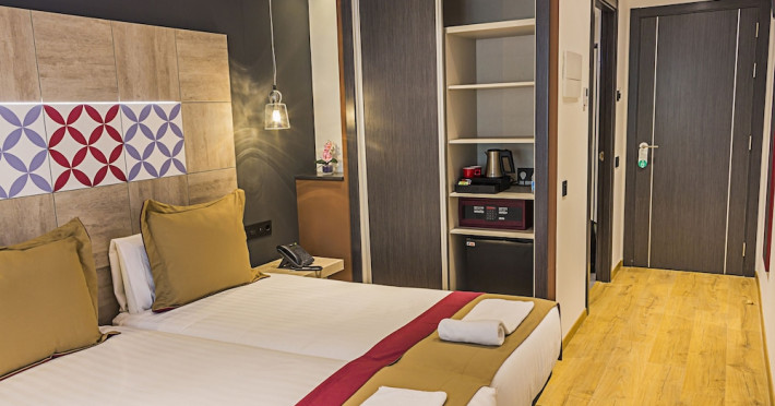 This charming null is in Sagrada Familia Area. null can make good use of the wireless internet connection available at the public areas of the null. Boutique Hostemplo Sagrada Familia offers a 24-hour reception service, so that guests needs will be fully met at any time of the day or night.Datorita dinamicitatii domeniului disponibilitatea ofertelor se modifica de la un moment la altul. De aceea ofertele sunt valabile in limita locurilor disponibile. Agentia nu este responsabila pentru eventualele neconcordante care pot aparea intre informatiile privind tarifele si alte detalii din site si informatiile primite in agentie. In aceste cazuri vor avea prioritate, intotdeauna, informatiile primite in agentie.