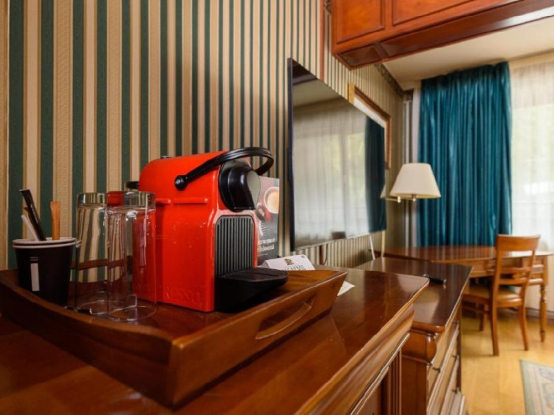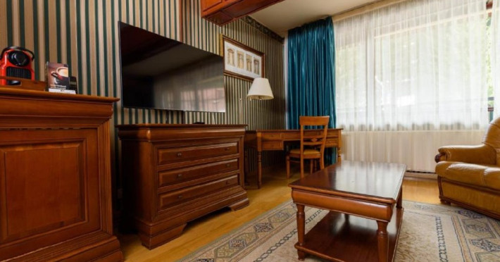 Camerele au baie privata, balcon si zona de relaxare cu minibar, TV cu ecran plat si aparat de cafea.