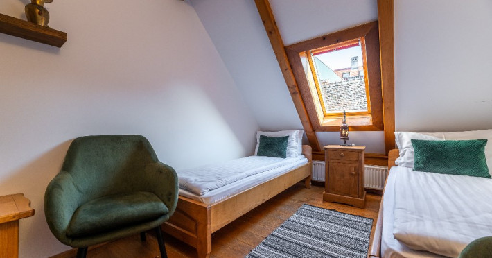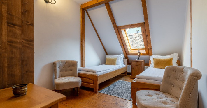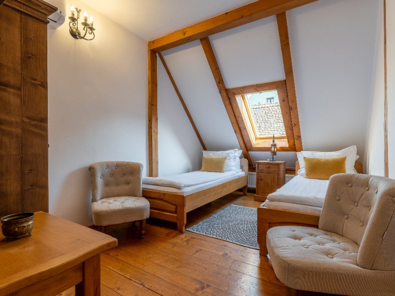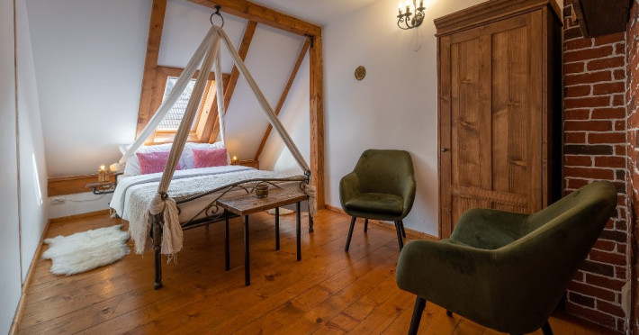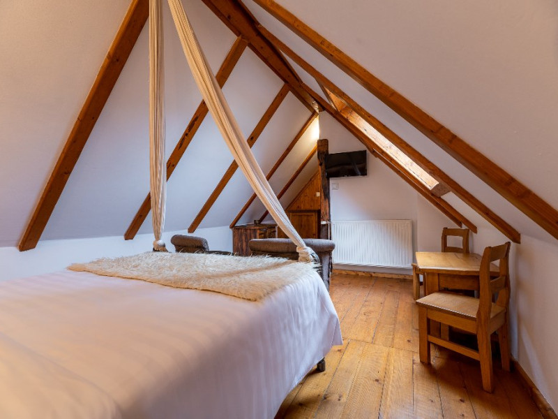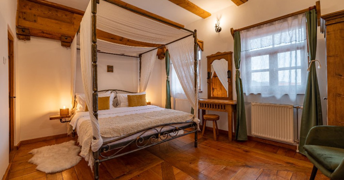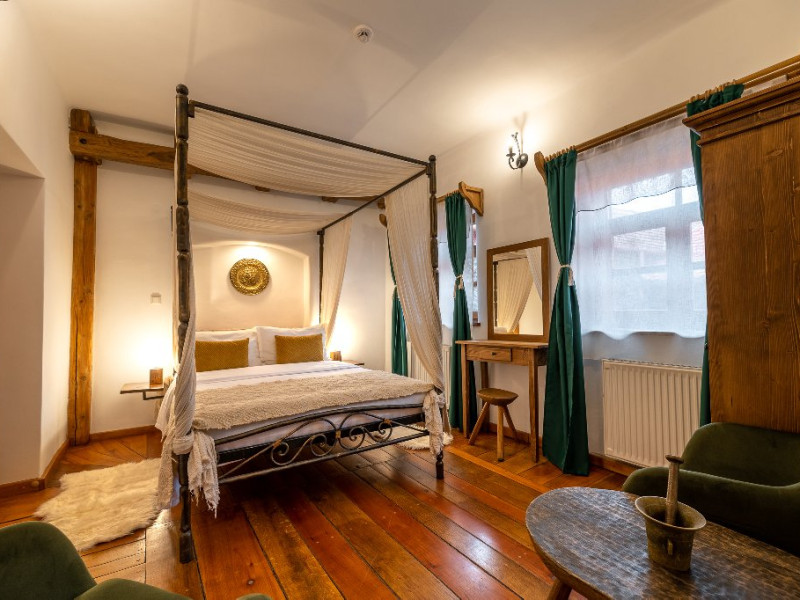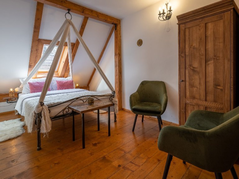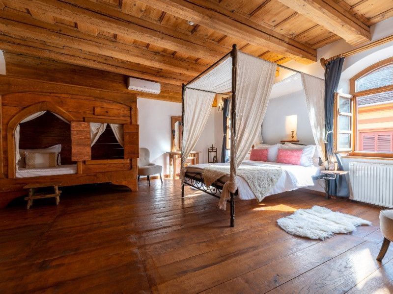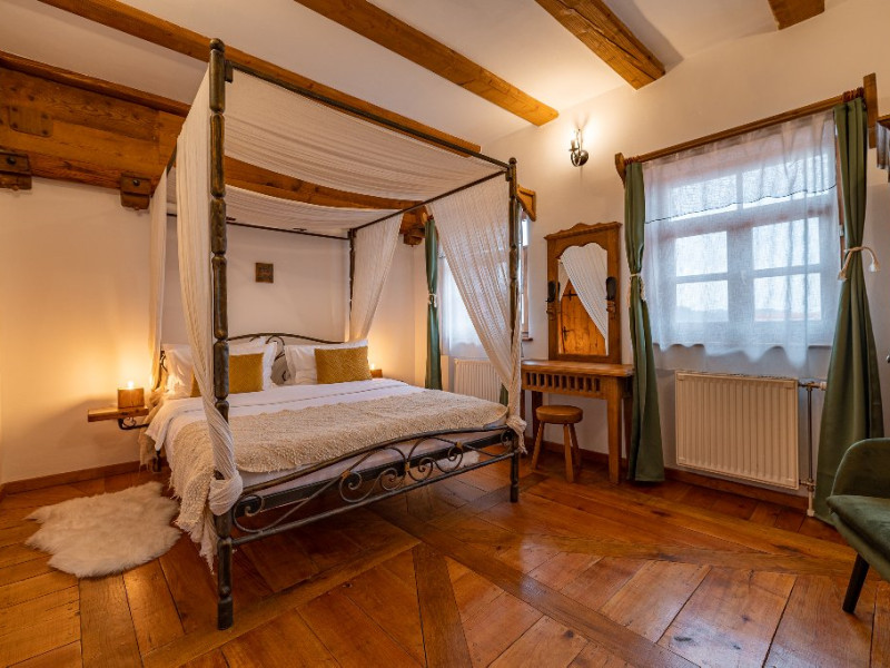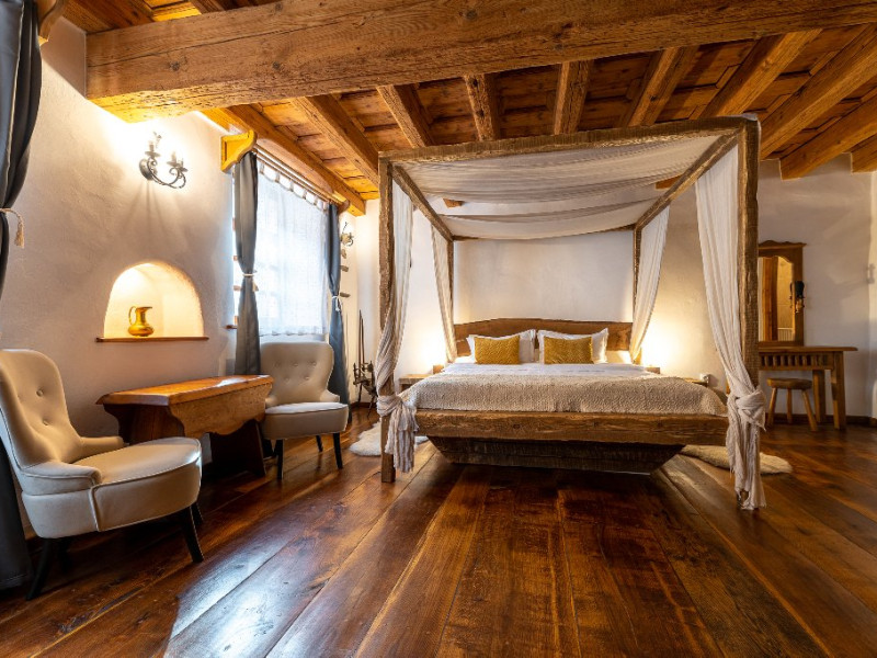 Toate camerele sunt dotate cu TV, aer conditionat, frigider, baie proprie si majoritatea au un element caracteristic perioadei medievale: pat cu baldachin.