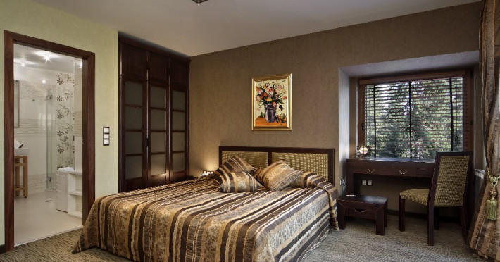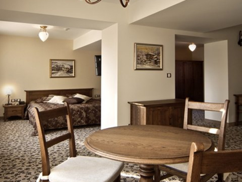Camerele duble sunt dotate cu TV, telefon, seif, Wi-Fi, frigider, baie cu cada, uscator de par. Au vedere la padure si la centrul statiunii.
