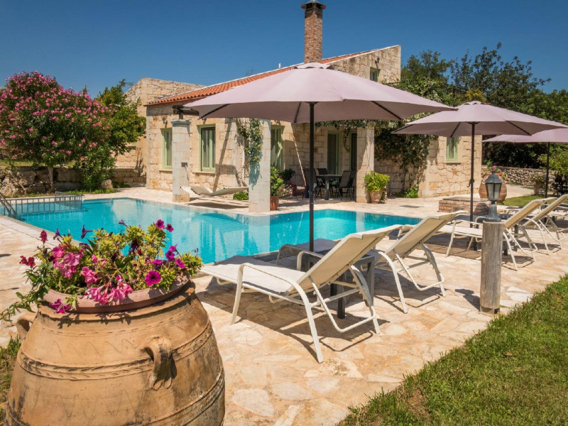 HEATED POOL This stunning villa combines the elegance of modern architecture with the natural beauty of the environment. The villa stands out for its large windows that allow for an unobstructed connection between the interior and exterior spaces. Residents can enjoy the impressive view of the pool and the lush landscape from every corner of the house, creating a sense of tranquility and harmony with nature. The open spaces and elegant decor offer a unique atmosphere that combines comfort with sophistication, making the villa ideal for relaxation and enjoyment. Some information about the villa: Heated pool is available for the period, from 15 March, April, May and October with no extra charge. If you want heated pool for the months June - Julie - August - September there is extra cost. About 5th person: for the fifth person an extra bed is added in one of the two bedrooms of your choice.HEATED POOL This stunning villa combines the elegance of modern architecture with the natural beauty of the environment. The villa stands out for its large windows that allow for an unobstructed connection between the interior and exterior spaces. Residents can enjoy the impressive view of the pool and the lush landscape from every corner of the house, creating a sense of tranquility and harmony with nature. The open spaces and elegant decor offer a unique atmosphere that combines comfort with sophistication, making the villa ideal for relaxation and enjoyment. Some information about the villa: Heated pool is available for the period, from 15 March, April, May and October with no extra charge. If you want heated pool for the months June - Julie - August - September there is extra cost. About 5th person: for the fifth person an extra bed is added in one of the two bedrooms of your choice.