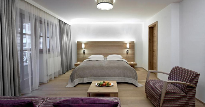 Imagetext Hotel: In the Romantik Hotel Schwarzer Adler you are welcomed by the charm and passion of 500 years of hotel history. The Schwarzer Adler is a pece of Innsbruck. With is parlours, archways and elegantly designed rooms guests are taken into the world of romance.