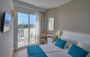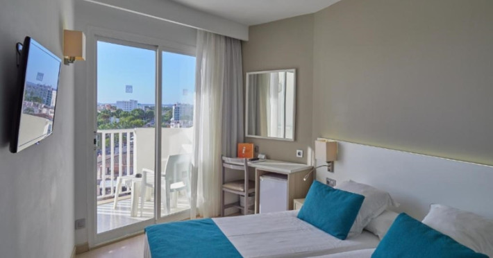 About 400 m from a public sandy beach is located the hotel BQ Delfin Azul Hotel. The nearest bars and restaurants can be found at a distance of around 100 m. The old town is around 1 km away. A supermarket and other shops you reach after around 200 m. The beach is to reach along the road and patrolled by a lifeguard. Here, there are cushions for a fee available. Directly next to the beach there is a promenade where you can take leisurely walks. The air-conditioned, GPS-verified hotel is equipped with a 24h reception (check-in is possible around the clock), a lobby bar, Wi-Fi, an internet corner, a lift, a first aid kit as well as a TV lounge with satellite TV. In the outdoor area of the property you will find a garden as well as a pool that is open seasonally, where you can rent pool towels for a fee and sun loungers are available for free. There is also a separate children's pool. You can store your valuables in the safe (extra fee), and your luggage in the hotel`s storage roomn. In addition, the hotel BQ Delfin Azul Hotel is video-monitored 24h a day. For the young hotel guests there is a playground. For very young guests, kid`s chairs, highchairs and cots can also be provided. For the smallest children prams can be rented in the hotel. There is also a laundry service available at an additional cost to customers as well as an ironing service. If necessary, you can contact the medical centre (for a fee). The energy supply is 220 Volts. If you want to explore the holiday region, you can use the car and motorbike rental service close to the hotel (extra fee). At the hotel reception, tickets are offered for excursions in the area. For guests on their honeymoon, the hotel has special offers such as a basket of fruit in the room. In your hotel, a lot of focus is placed on sustainability. This includes the provision of soap, shampoo and lotion dispensers, ecological meals, a central room air-conditioning, environmentally-friendly cleaning, the use of a closed-water circuit and environmentally-friendly transportation . That is why the hotel BQ Delfin Azul Hotel was also awarded a sustainability certificate. American Express, Euro/Master Card and EC cards are accepted as means of payment. Due to its barrier-free facilities , such as an automatic hotel door, barrier-free entrances, a wheelchair accessible lift, a handrail in the elevator and wheelchair-accessible bathrooms, the hotel is also suitable for wheelchair users. Catering As catering services the hotel offers half board, breakfast only and self-catering. Breakfast is offered from the buffet (extras on request). Enjoy your lunch à la carte. Dinner is also served as a buffet (extras on request). For the meals, there are a buffet restaurant with terrace (Mediterranean, calorie-reduced, gluten-free and vegetarian dishes) and the cafeteria as well as the pool bar. For dinner, guests are asked to wear appropriate clothing in the restaurant. Distances- Discotheque: approx. 500 m