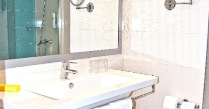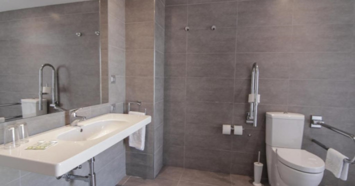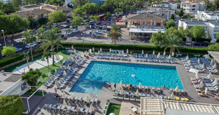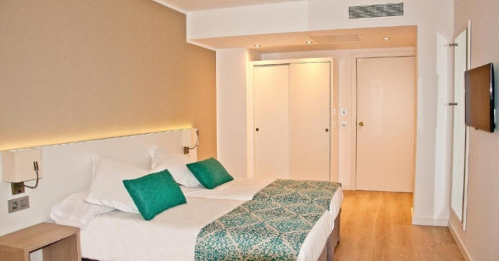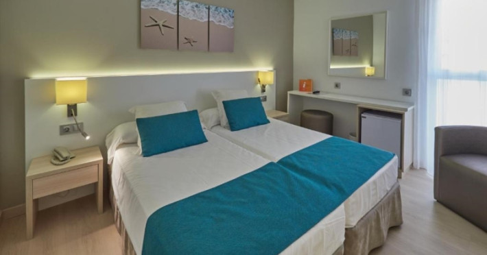 About 400 m from a public sandy beach is located the hotel BQ Delfin Azul Hotel. The nearest bars and restaurants can be found at a distance of around 100 m. The old town is around 1 km away. A supermarket and other shops you reach after around 200 m. The beach is to reach along the road and patrolled by a lifeguard. Here, there are cushions for a fee available. Directly next to the beach there is a promenade where you can take leisurely walks. The air-conditioned, GPS-verified hotel is equipped with a 24h reception (check-in is possible around the clock), a lobby bar, Wi-Fi, an internet corner, a lift, a first aid kit as well as a TV lounge with satellite TV. In the outdoor area of the property you will find a garden as well as a pool that is open seasonally, where you can rent pool towels for a fee and sun loungers are available for free. There is also a separate children's pool. You can store your valuables in the safe (extra fee), and your luggage in the hotel`s storage roomn. In addition, the hotel BQ Delfin Azul Hotel is video-monitored 24h a day. For the young hotel guests there is a playground. For very young guests, kid`s chairs, highchairs and cots can also be provided. For the smallest children prams can be rented in the hotel. There is also a laundry service available at an additional cost to customers as well as an ironing service. If necessary, you can contact the medical centre (for a fee). The energy supply is 220 Volts. If you want to explore the holiday region, you can use the car and motorbike rental service close to the hotel (extra fee). At the hotel reception, tickets are offered for excursions in the area. For guests on their honeymoon, the hotel has special offers such as a basket of fruit in the room. In your hotel, a lot of focus is placed on sustainability. This includes the provision of soap, shampoo and lotion dispensers, ecological meals, a central room air-conditioning, environmentally-friendly cleaning, the use of a closed-water circuit and environmentally-friendly transportation . That is why the hotel BQ Delfin Azul Hotel was also awarded a sustainability certificate. American Express, Euro/Master Card and EC cards are accepted as means of payment. Due to its barrier-free facilities , such as an automatic hotel door, barrier-free entrances, a wheelchair accessible lift, a handrail in the elevator and wheelchair-accessible bathrooms, the hotel is also suitable for wheelchair users. Catering As catering services the hotel offers half board, breakfast only and self-catering. Breakfast is offered from the buffet (extras on request). Enjoy your lunch à la carte. Dinner is also served as a buffet (extras on request). For the meals, there are a buffet restaurant with terrace (Mediterranean, calorie-reduced, gluten-free and vegetarian dishes) and the cafeteria as well as the pool bar. For dinner, guests are asked to wear appropriate clothing in the restaurant. Distances