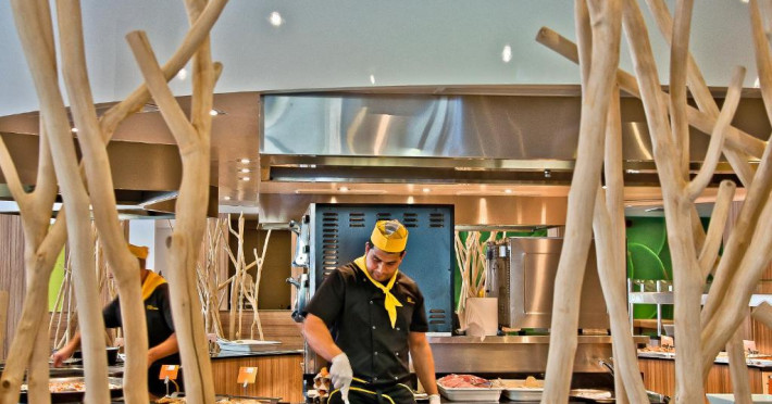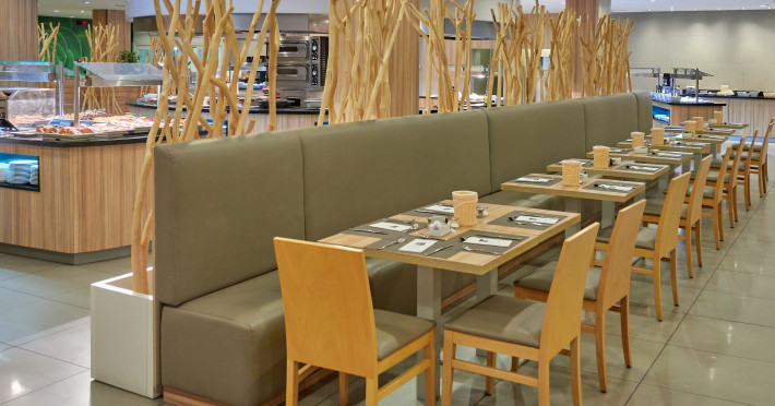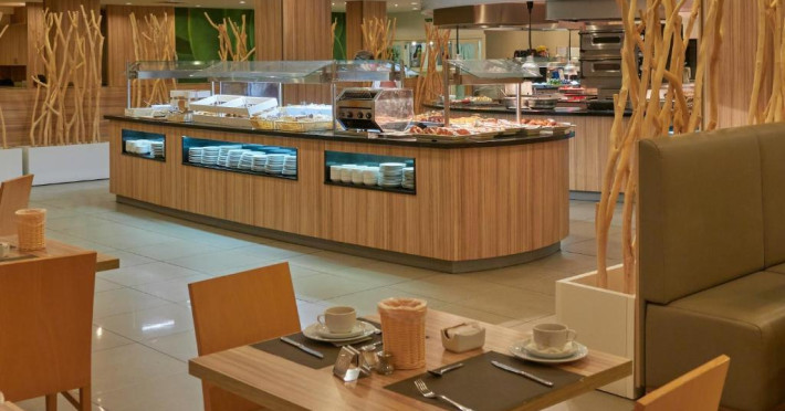 Locurile unde se poate lua masa cuprind o cafenea și un bar. Restaurantul are aer condiționat și scaune înalte pentru copii. Se oferă spre rezervare demipensiune. La mic dejun și o cină se organizează un bufet divers.