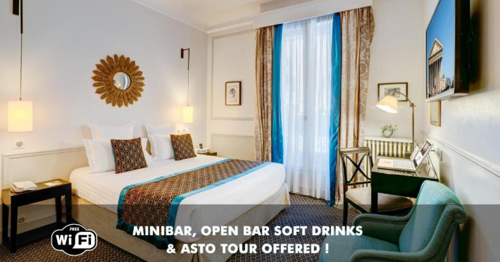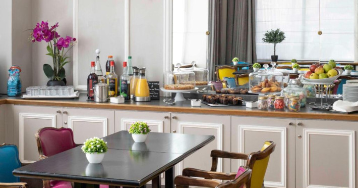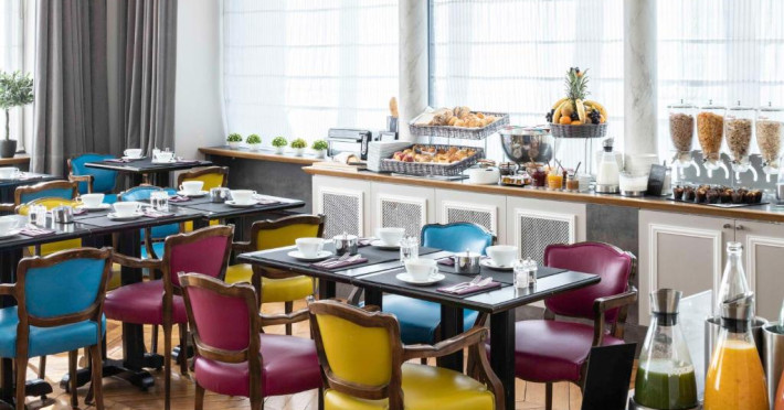 A buffet breakfast is served every morning in the hotel’s luminous dining room. Guests can also choose to have breakfast served in the guest room. Starting in the afternoon until late in the evening, guests can also enjoy free non-alcoholic beverages and snacks in the hotel lobby. Guests can stop by any of Astotel's hotels in Paris to enjoy this service and have a drink or snack, free of charge.