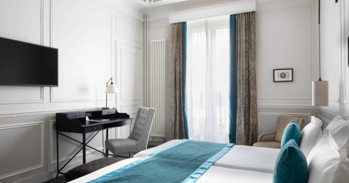 Each of the spacious guest rooms at Bradford Elysées has a classically elegant décor, and is equipped with cable TV. Some rooms feature a balcony and each room includes complimentary non-alcoholic beverages in the minibar. The tiled private bathrooms include a marble sink.