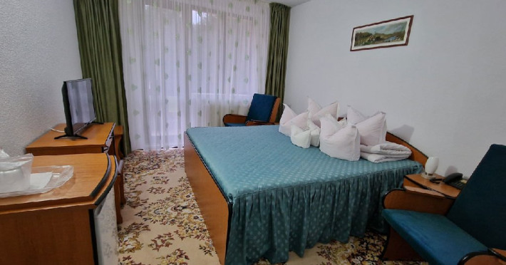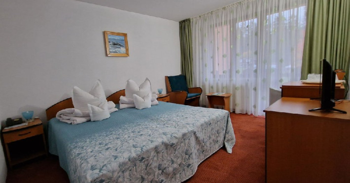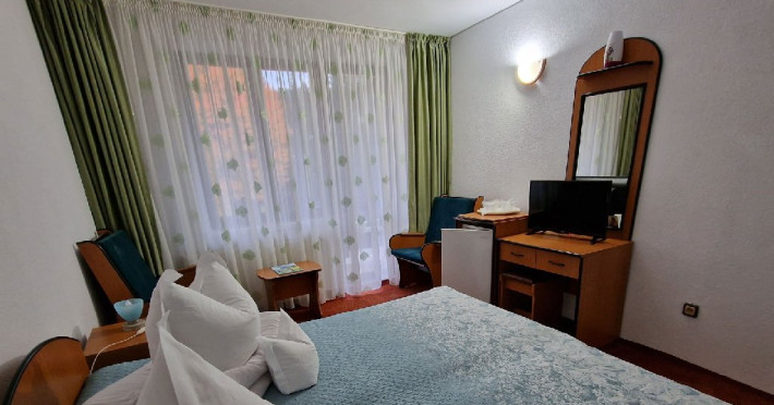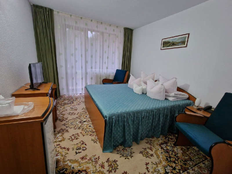 Hotelul dispune de 63 camere duble, 2 apartamente, 9 camere triple, restaurant, sala conferinte, bar de zi, bucatarie clasica si traditionala, terasa de vara, biliard, parcare proprie gratuita.