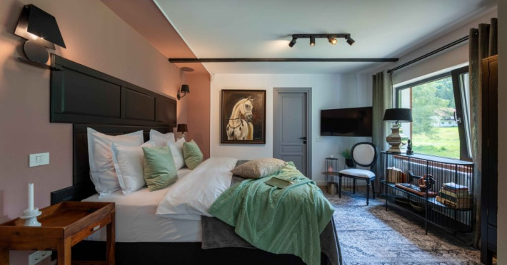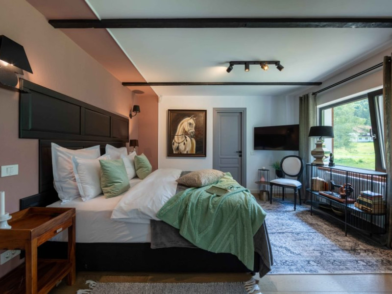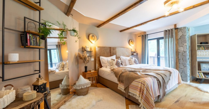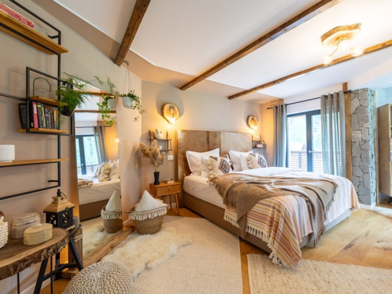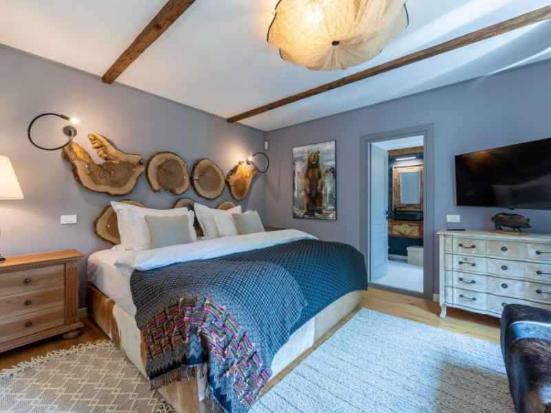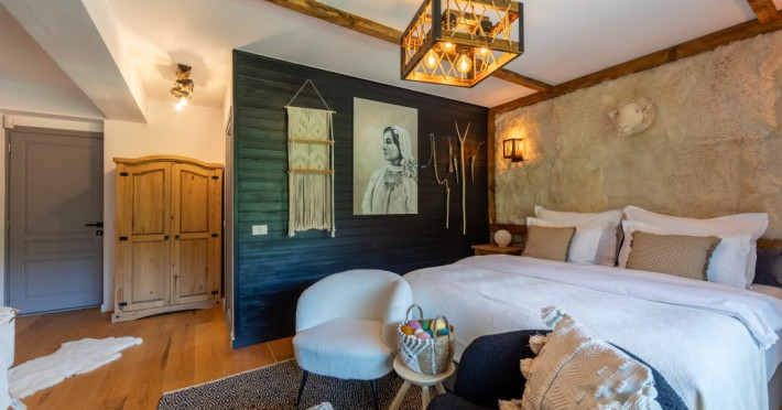 Amplasata intr-un cadru natural deosebit, la poalele Muntilor Bucegi, proprietatea dispune de 8 camere tematice, caracterizate prin rafinament, confort si atentie la detalii. Personalitatea distincta a fiecarui spatiu contribuie la crearea unei atmosfere autentice, transformand chaletul intr-un loc fascinant, unde traditia, cultura si peisajele spectaculoase completeaza experienta oferita.
