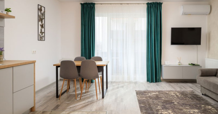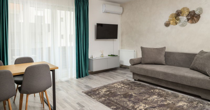 Near Silviu Ploiesteanu Stadium. Located in Brasov, Brasov Holiday Apartments is connected to a shopping center, a 4-minute drive from Silviu Ploiesteanu Stadium and 6 minutes from Piata Sfatului. This apartment is 10.6 mi (17.1 km) from Poiana Brasov Ski Resort and 7.1 mi (11.4 km) from Parc Aventura Brasov. Make yourself at home in one of the 14 individually decorated guestrooms, featuring kitchens with refrigerators and ovens. Rooms have private furnished balconies. Flat-screen televisions with cable programming provide entertainment, while complimentary wireless Internet access keeps you connected. Private bathrooms with shower/tub combinations feature deep soaking bathtubs and rainfall showerheads. Make use of convenient amenities, which include complimentary wireless Internet access and tour/ticket assistance.Datorita dinamicitatii domeniului disponibilitatea ofertelor se modifica de la un moment la altul. De aceea ofertele sunt valabile in limita locurilor disponibile. Agentia nu este responsabila pentru eventualele neconcordante care pot aparea intre informatiile privind tarifele si alte detalii din site si informatiile primite in agentie. In aceste cazuri vor avea prioritate, intotdeauna, informatiile primite in agentie.