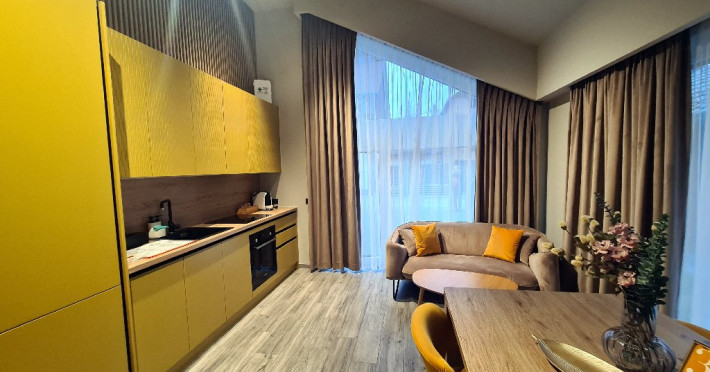 4 dintre casute dispun de doua dormitoare si living cu colt amenajat pentru gatit, baie proprie si terasa. In spate, este amenajat foisor individual pentru gratar.