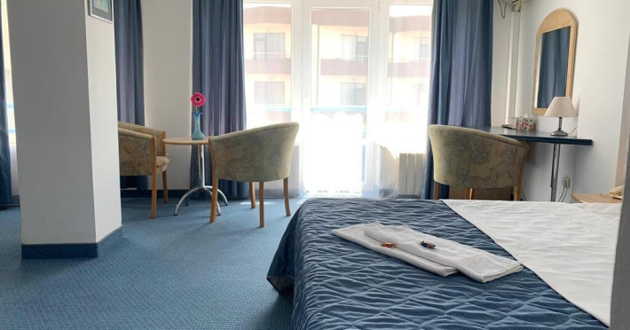 - garsoniere 3* Capacitate maxima 2 adulti si 2 copii - au o suprafata de aproximativ 35 mp si sunt dotate cu pat matrimonial si canapea extensibila, baie proprie, TV LED, aer conditionat, minibar, internet wireless gratuit, de mare viteza, uscator de par. Accesul in junior suite este permis cu cartele magnetice.