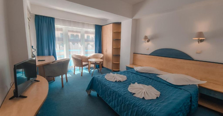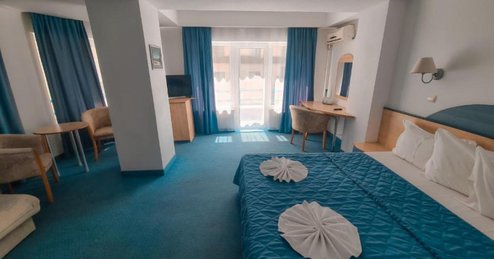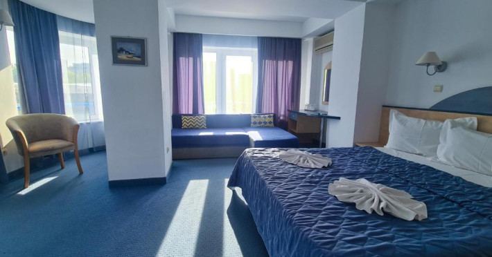 Amplasare: in zona de nord a statiunii, la cativa metri de plaja. Facilitati hotel: 9 camere duble si 7 garsoniere cu canapea extensibila. Hotelul nu detine plaja proprie, iar parcarea este domeniu public, taxele fiind cele impuse de Primaria Constanta. Facilitati camere: baie proprie, TV, AC, minibar, uscator de par, Wi-Fi de mare viteza, acces pe baza de cartela magnetica. Camerele duble au suprafata de 22.5 mp si sunt dotate cu pat matrimonial, iar garsonierele au o suprafata de aproximativ 35 mp si sunt dotate cu pat matrimonial si canapea extensibila.Datorita dinamicitatii domeniului disponibilitatea ofertelor se modifica de la un moment la altul. De aceea ofertele sunt valabile in limita locurilor disponibile. Agentia nu este responsabila pentru eventualele neconcordante care pot aparea intre informatiile privind tarifele si alte detalii din site si informatiile primite in agentie. In aceste cazuri vor avea prioritate, intotdeauna, informatiile primite in agentie.