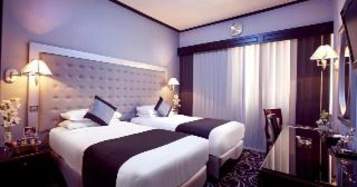 This city hotel is located in the Deira district of the city, a major business area, and is just a 10-minute taxi ride from the Dubai Creek Golf & Yacht Club and the Dubai World Trade Centre. The Dubai International Airport lies approximately 5 km away. This homely hotel has comprehensive facilities and services including secretarial services for business guests and a beach shuttle bus service for leisure travellers. The air-conditioned hotel provides a total of 81 guestrooms, as well as a lobby, bar, café and 3 restaurants. Each of the hotel's guest rooms is fitted with an en suite bathroom with a shower. The rooms are also equipped with air conditioning, satellite TV, a direct dial telephone, a minibar, Internet access, a fridge, tea and coffee making facilities, an ironing set and a safety deposit box. There is a swimming pool, a gym and a sauna in the hotel. The Dubai Creek Golf Club is located nearby. There are three finely designed restaurants in the hotel. Relish authentic Italian dishes at the coffee shop. The bar offers fine drinks and scintillating performances by a live band. The Piazza's Terrace serves international delicacies along with a tempting array of desserts.This city hotel is located in the Deira district of the city, a major business area, and is just a 10-minute taxi ride from the Dubai Creek Golf & Yacht Club and the Dubai World Trade Centre. The Dubai International Airport lies approximately 5 km away. This homely hotel has comprehensive facilities and services including secretarial services for business guests and a beach shuttle bus service for leisure travellers. The air-conditioned hotel provides a total of 81 guestrooms, as well as a lobby, bar, café and 3 restaurants. Each of the hotel's guest rooms is fitted with an en suite bathroom with a shower. The rooms are also equipped with air conditioning, satellite TV, a direct dial telephone, a minibar, Internet access, a fridge, tea and coffee making facilities, an ironing set and a safety deposit box. There is a swimming pool, a gym and a sauna in the hotel. The Dubai Creek Golf Club is located nearby. There are three finely designed restaurants in the hotel. Relish authentic Italian dishes at the coffee shop. The bar offers fine drinks and scintillating performances by a live band. The Piazza's Terrace serves international delicacies along with a tempting array of desserts.