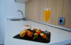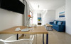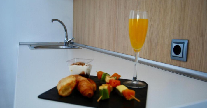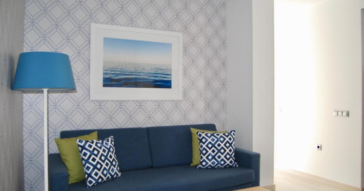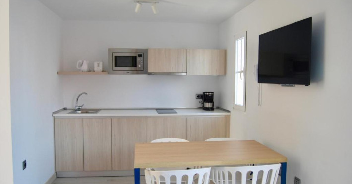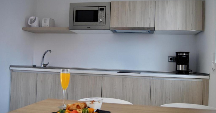 Fiecare apartament de la Broncemar Beach Suites are 1 dormitor, un balcon și o zonă de living-sufragerie. Chicineta include plită electrică, cuptor cu microunde și frigider.