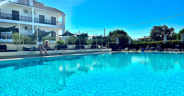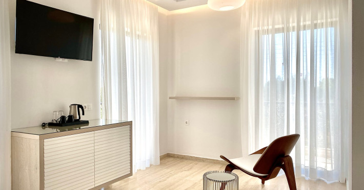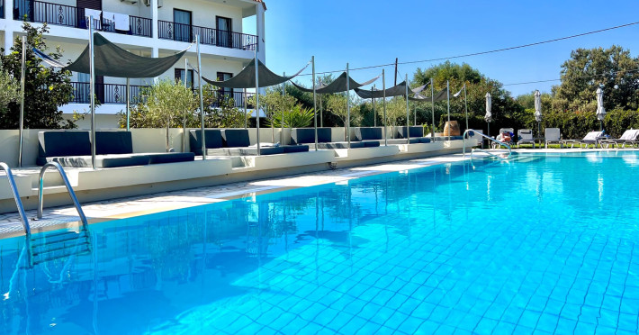 Hotel:Corfu is the greenest and among the most beautiful island in the Mediterranean, where philoxenia is still a way of life. Set amongst wineyards and olive groves “Bruskos Hotel & Ionian Suites” is a small, family operated hotel, that will captivate all visitors with it’s beautiful simplicity, relaxing atmosphere, friendly environment and great value for money. If you are coming to explore the island or just to relax and enjoy the wonderful sunshine “Bruskos Hotel” is the perfect place for your holiday. For the guests who are looking for a more premium accomodation, we have create the Ionian suites, the premium part of our hotel, which incorporates the concept of luxury, complete relation and personalised services with a family character. The suites are made in the same area with its affiliate “bruskos hotel”. It’s nature, sunshine, discreet services with great attention to detail and the surroundings of the olive groves makes it the perfect place to retreat your senses.Location:The hotel is located in a quiet location on the south coast of Corfu and is approximately 200 m from the beautiful sandy beach. The town of St. Georges with supermarkets, restaurants, bars and pubs is around 500 m away. The hotel is suitable for a quiet, relaxing holiday. Corfu town is about 32 km away by bus or taxi. Eat and drink:The hotel promotes the Greek gastronomy, offering the guests a special opportunity to taste new types of Mediterranean dishes. Guests can enjoy traditional or modern recipes from salads to appetizers, main dishes and desserts. Concurrently, we may have a special cocktail and a couple of drinks in the elegant pool bar with the magnificent atmosphere.We offer a large selection of fresh and healthy, top-quality, Greek products. Guests can enjoy our ''Power Breakfast'' where you can choose between anything from ham & eggs to cereals, fresh fruits, juices, yogurt, honey, homemade sweets, jam, and teas. We also produce and sell one of the finest virgin handpicked biologic olive oil.Hotel:Corfu is the greenest and among the most beautiful island in the Mediterranean, where philoxenia is still a way of life. Set amongst wineyards and olive groves “Bruskos Hotel & Ionian Suites” is a small, family operated hotel, that will captivate all visitors with it’s beautiful simplicity, relaxing atmosphere, friendly environment and great value for money. If you are coming to explore the island or just to relax and enjoy the wonderful sunshine “Bruskos Hotel” is the perfect place for your holiday. For the guests who are looking for a more premium accomodation, we have create the Ionian suites, the premium part of our hotel, which incorporates the concept of luxury, complete relation and personalised services with a family character. The suites are made in the same area with its affiliate “bruskos hotel”. It’s nature, sunshine, discreet services with great attention to detail and the surroundings of the olive groves makes it the perfect place to retreat your senses.Location:The hotel is located in a quiet location on the south coast of Corfu and is approximately 200 m from the beautiful sandy beach. The town of St. Georges with supermarkets, restaurants, bars and pubs is around 500 m away. The hotel is suitable for a quiet, relaxing holiday. Corfu town is about 32 km away by bus or taxi. Eat and drink:The hotel promotes the Greek gastronomy, offering the guests a special opportunity to taste new types of Mediterranean dishes. Guests can enjoy traditional or modern recipes from salads to appetizers, main dishes and desserts. Concurrently, we may have a special cocktail and a couple of drinks in the elegant pool bar with the magnificent atmosphere.We offer a large selection of fresh and healthy, top-quality, Greek products. Guests can enjoy our ''Power Breakfast'' where you can choose between anything from ham & eggs to cereals, fresh fruits, juices, yogurt, honey, homemade sweets, jam, and teas. We also produce and sell one of the finest virgin handpicked biologic olive oil.