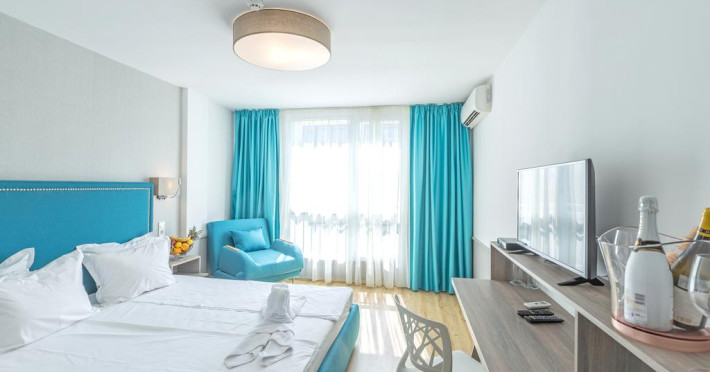 Camerele sunt dotate cu baie cu duș și uscător pentru păr, aer condiționat, Tv satelit, Wi-Fi și minibar. Majoritatea dispun de balcon, iar la cerere se oferă gratuit pătuțuri pentru bebeluși.
