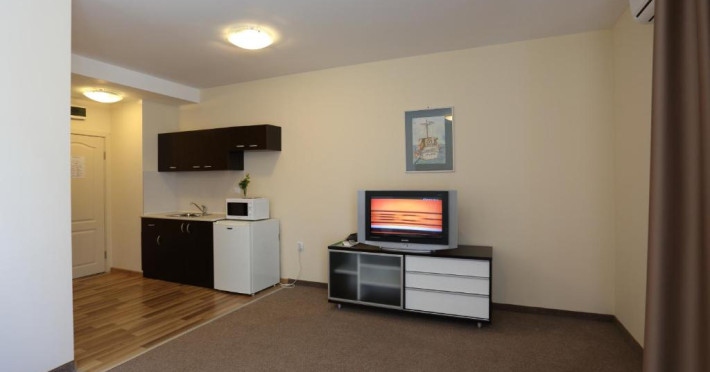 Toate camerele dispun de aer conditionat, televizor LCD, birou, mini bar (frigider in apartamente), telefon, Wi-Fi gratuit, terasa, baie cu dus. De la receptie oaspetii pot solicita, gratis, uscator de par si fier de calcat. Apartamentele dispun de chicineta utilata - cuptor cu microunde si tacamuri.