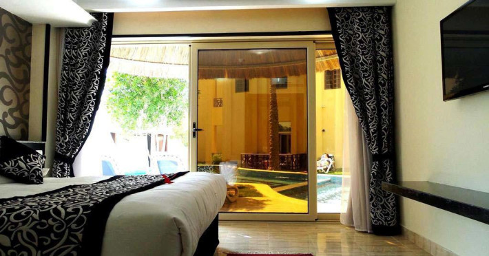Dispune de 21 spatii de cazare distribuite astfel: 10 camere duble (6 twin + 4 matrimoniale), 7 apartamente clasice - cu living, dormitor si baie proprie, 4 apartamente executive din care: 1 apartament cu living, bucatarie (complet utilata), baie proprie si 2 dormitoare duble; 3 apartamente cu living, bucatarie (complet utilata), baie proprie si 2 dormitoare (unul dublu si 1 single). Toate camerele sunt dotate cu televiziune prin cablu, internet wireless sau cu fir, minibar, telefon.