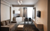 1 Apartament standard cu vedere catre piscina si mare cu 3 camere ( suprafata 102 mp) ce cuprind paturi duble matrimoniale cat si sofa extensibila in living . Capacitatea maxima de cazare a acestui tip de camera este de 6 persoane.