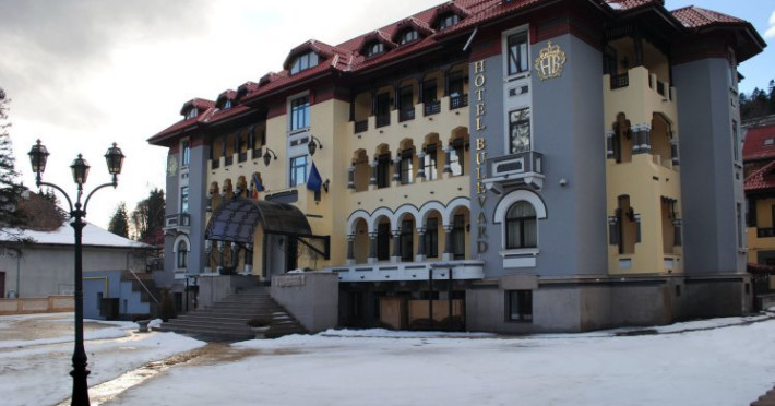 HOTEL BULEVARD din statiunea Predeal este pozitionat intr-un cadru montan unic , dominat de privelistea impunatoare a Muntilor Bucegi, Piatra Mare si Postavarul si de aerul curat si proaspat al muntelui. Acesta este situat la 900 m de partiile de schi, si ofera acces gratuit la internet Wi-Fi, restaurant, terasa si gradina. Cu o traditie de peste 85 ani complexul este complet renovat si ofera 31 spatii de cazare amenajate elegant. Gara Predeal este la 500 de metri, iar Castelul Peles este la 13 km Accesibilitate: acces direct din DN1 (Drumul National 1), parcare gratuita delimitata cu bariere de acces, sistem de supravhegere. Dotari si servicii Cladirea construita in anul 1928 specifica perioadei interbelice a fost pastrata si renovata, astfel incat Hotelul Bulevard este si astazi o prezenta impunatoare si boema, in care confortul si starea de bine va invita sa-i treceti pragul lasand la intrare grijile cotidiene, relaxandu-va si bucurandu-va de momente frumoase pe care le puteti petrece in locurile special concepute pentru dumneavoastra. Clientii se pot relaxa in cadrul hotelului la sauna si jacuzzi. RESTAURANT - hotelul are un restaurant spatios si o terasa de vara. Restaurantul dispune de 66 locuri intr-un stil elegant unde puteti comanda preparate culinare din bucataria romaneasca si internationala. Barul dispune de 23 locuri intr-un ambient de exceptie, aici puteti savura o gama variata de cocktailuri , bauturi alcoolice si nonalcoolice, preparate din cafea, ceaiuri, ciocolata calda, totul intrun ambient muzical placut. SAUNA USCATA (FINLANDEZA) - este o sauna realizata Intr-o incinta de lemn, Incalzita electric cu ajutorul rocilor vulcanice. Sauna uscata are o umiditate de aproximativ 10% si o temperatura de 85 - 90C, efectul fiind simtit dupa primele 5 minute de utilizare printr-o transpiratie puternica. Transpiratia este un proces natural si vital din punct de vedere al sanatatii. Datorita Incalzirii corpului, organismul Incearca sa-si mentina temperatura constanta, racindu-se prin transpiratie. In lichidele secretate de catre glandele sudoripare se regasesc saruri minerale, substante reziduale de metabolism si toxine acumulate In organism. Aceste glande secreta si o proteina bactericida (dermicidina), care actioneza ca un antibacterian si limiteaza dezvoltarea florei bacteriene cutanate ,care pot da nastere infectiilor ale pielii, cum ar fi acneea. JACUZII este o piscina sau o cada cu hidromasaj, ce poarta denumirea de SPA la domiciliu. Acest tip de cada a fost inventat in 1968 de Roy Jacuzzi, de unde si denumirea lui. Asa au fost puse bazele hidroterapiei la domiciliu, fenomen preluat apoi de hoteluri si SPA-uri de relaxare. Prin Jacuzzi, se foloseste apa calda ca terapie, aceasta avand o temperatura constanta de 37 de grade. Dar ce este de fapt un Jacuzzie O cada sau o piscina prevazuta cu orificii prin care sunt impinse in piscina valuri de aer cald sau apa fierbinte sub presiune. Apa este filtrata in permanenta, existand un circuit neintrerupt - pe de o parte intra in piscina valuri de apa calda sub presiune, iar pe de alta, apa racita se scurge din piscina pentru a se pastra permanent acelasi nivel de apa si temperatura. Timpul recomandat pentru o sedinta de Jacuzzi este de 15-20 de minute. Accesul cu animale nu este permis. Servicii masa MASA: restaurant propriu. Dotari camere 2 camere single dotate cu TV LCD, minibar, grup sanitar propriu si cabina de dus, seif, uscator de par, telefon, mocheta, acces internet. 21 camere duble. Acestea sunt dotare cu TV LCD, minibar, grup sanitar propriu si cabina de dus, telefon, seif, uscator de par, mocheta, acces internet. 8 apartamente, formate din dormitor si living (canapea extensibila), grup sanitar propriu si cabina de dus, minibar, seif, telefon, uscator de par, acces internet. Unele apartamente au balcon.Datorita dinamicitatii domeniului disponibilitatea ofertelor se modifica de la un moment la altul. De aceea ofertele sunt valabile in limita locurilor disponibile. Agentia nu este responsabila pentru eventualele neconcordante care pot aparea intre informatiile privind tarifele si alte detalii din site si informatiile primite in agentie. In aceste cazuri vor avea prioritate, intotdeauna, informatiile primite in agentie.