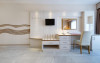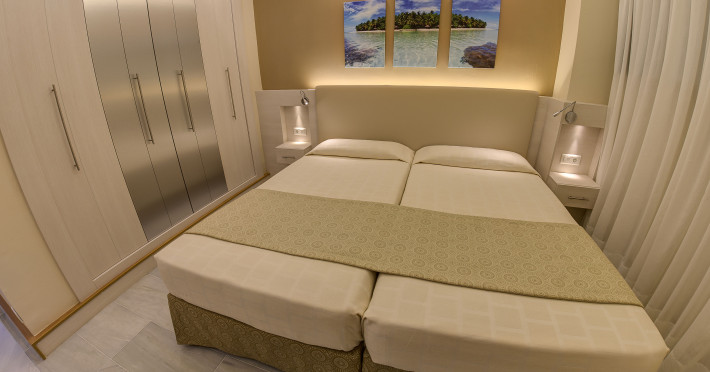 Camerele sunt amenajate cu o zonă de living, o bucătărie și o baie, de asemenea, un aparat de aer condiționat și un ventilator contribuie la o atmosferă agreabilă. În majoritatea camerelor se găsește câte un balcon. Clienții pot dormi confortabil pe o canapea. Sunt disponibile dormitoare separate. De asemenea, pot fi puse la dispoziție pătuțuri pentru bebeluși și paturi suplimentare. De asemenea, sunt disponibile un seif, un minibar și un birou. Camerele au și un frigider. Un telefon cu apelare directă, un televizor cu canale prin satelit/cablu TV, combina muzicală și WiFi-ul (gratuit) oferă un concediu confortabil. În baia dotată cu duș și cadă, clienților le stau la dispoziție un uscător de păr și o oglindă de machiaj. Articolele de cosmetică creează un confort deosebit în băi.