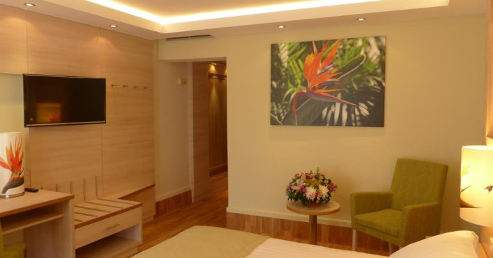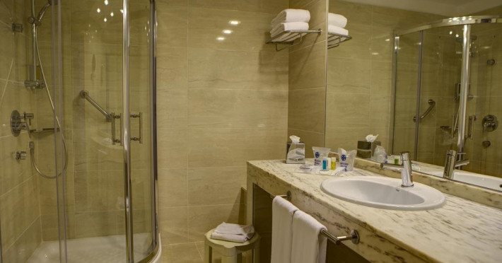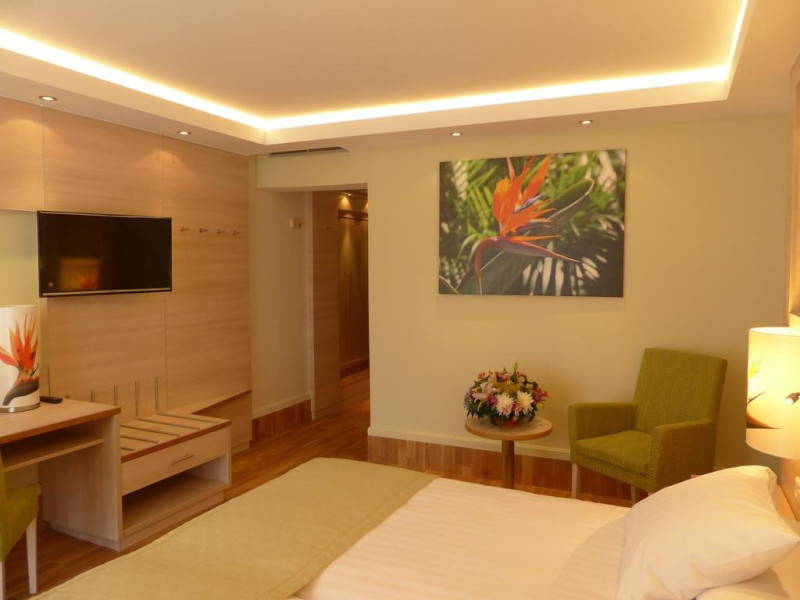 TV prin satelit, baie privata cu cada sau dus, uscator de par, minibar, birou, aer conditionat, articole de toaleta