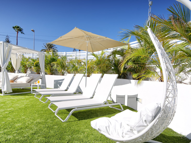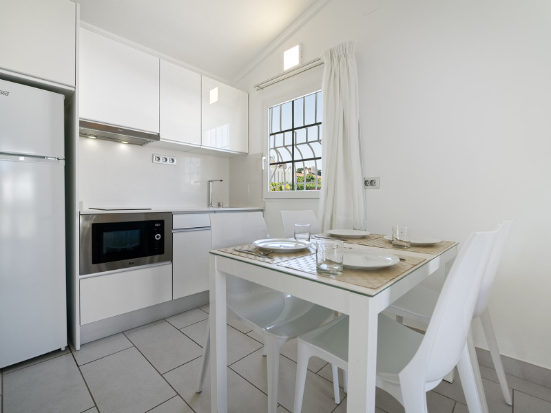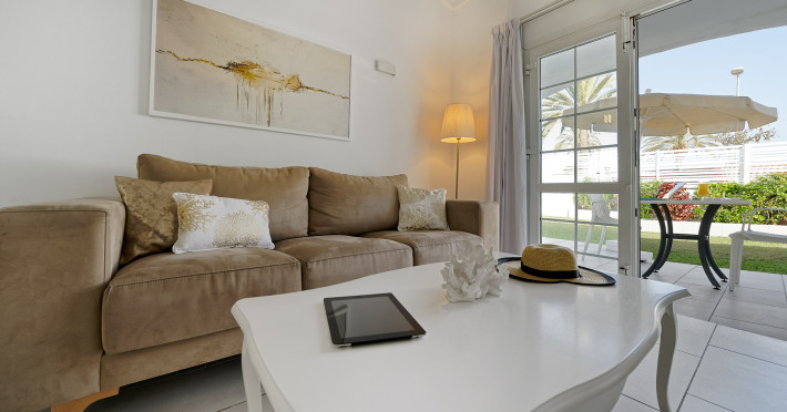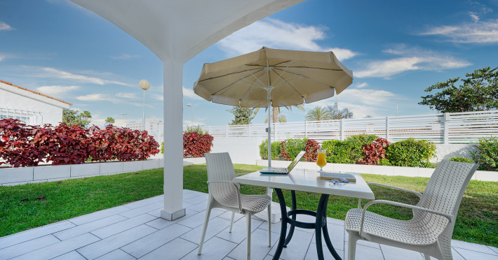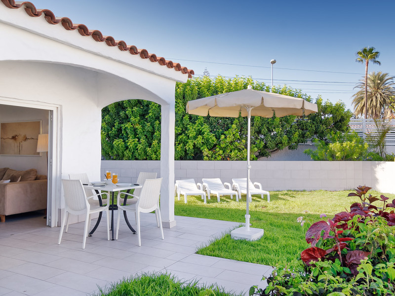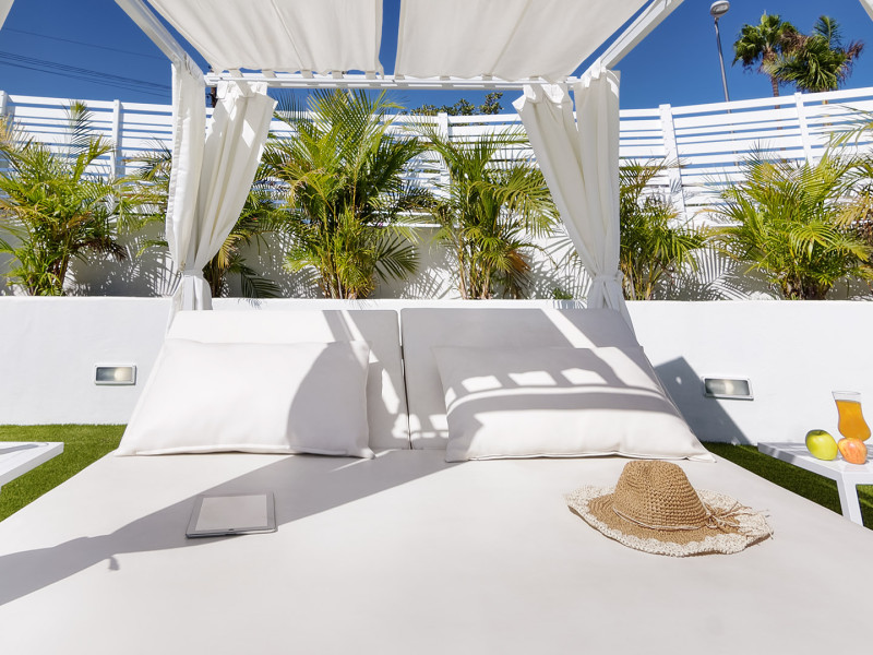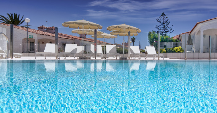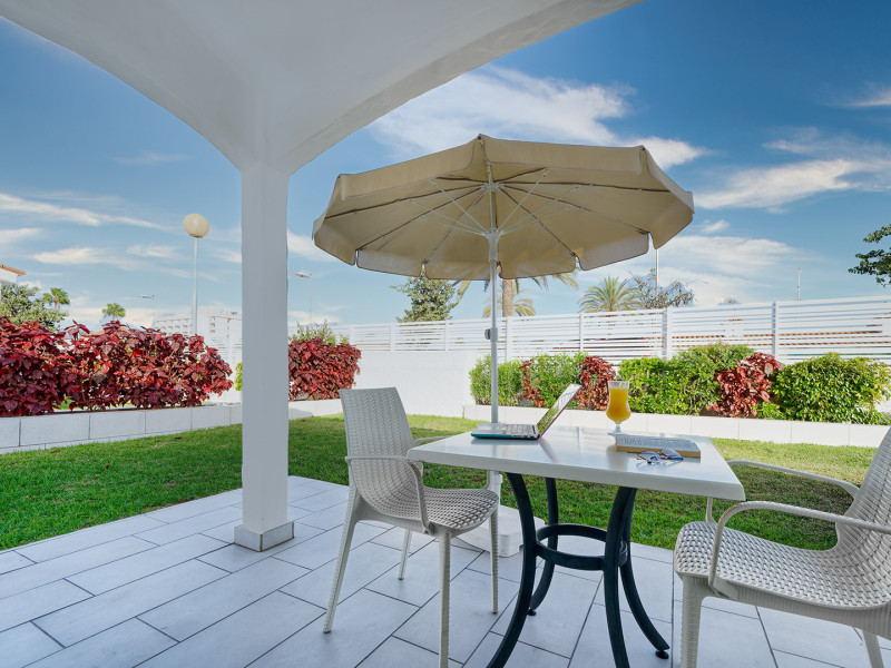 The aparthotel Bungalows Adonis is located approximately 500 m from a beach. The nearest bars and restaurants can be found at a distance of around 100 m. The city centre is around 1 km away. The nearest shops you can reach within around 200 m, a supermarket is around 300 m away. There is a shuttle service between the hotel and the airport. Nearby there is a disco which offers entertainment in high season. The air-conditioned hotel is equipped with a reception (check-in is possible around the clock), Wi-Fi, internet access, a first aid kit, parking spaces as well as a TV lounge with satellite TV. In the outdoor area of the property you will find a garden as well as a pool (open all year), where sun loungers, sun umbrellas and pool towels are available for free. Furthermore, you can relax outdoors on a terrace. You can store your valuables in the safe, and your luggage in the hotel`s storage room. In addition, the hotel Bungalows Adonis is video-monitored 24h a day. For very young guests, cots can also be provided. There is also a laundry and ironing service. The energy supply is 220 Volts. In addition, the hotel sells tickets for excursions. In your hotel, a lot of focus is placed on sustainability. This includes among others the provision of soap, shampoo and lotion dispensers. Euro/Master Card and Visa are accepted as means of payment. Distances