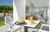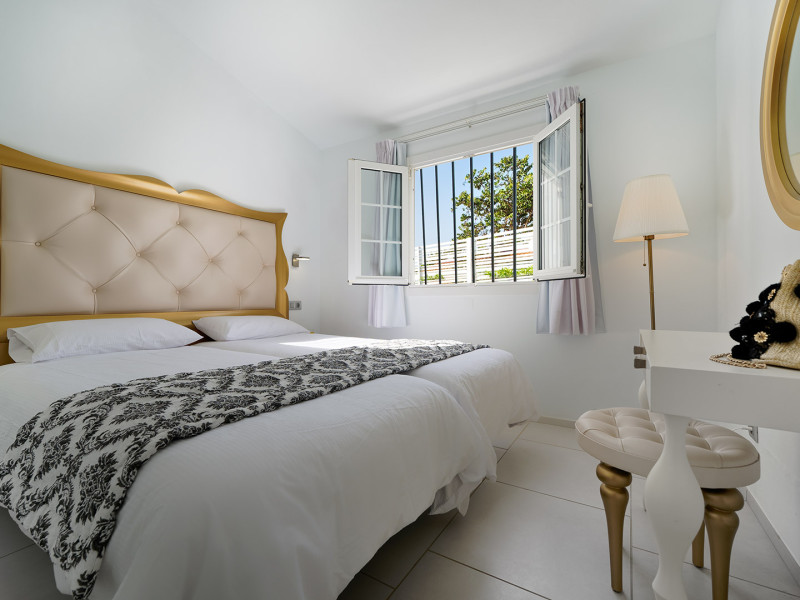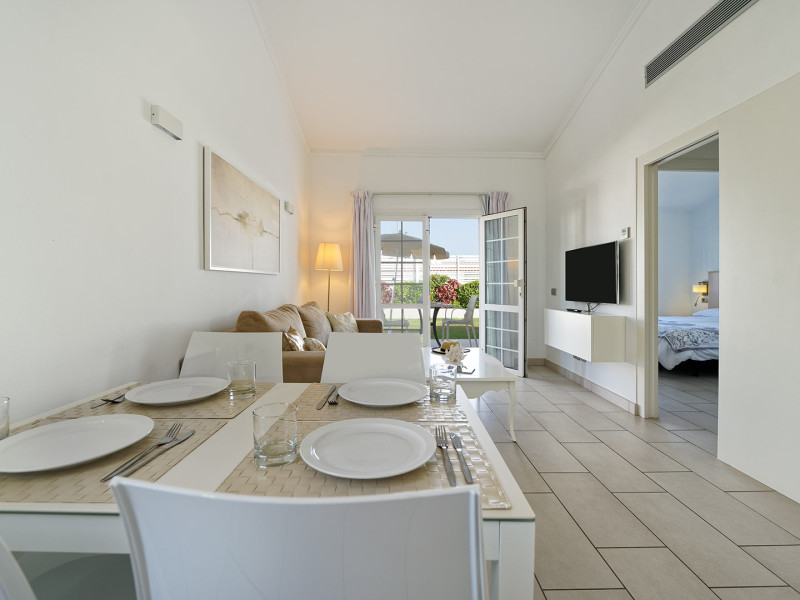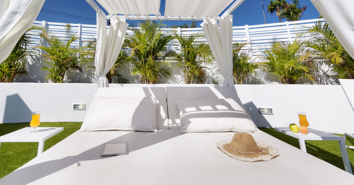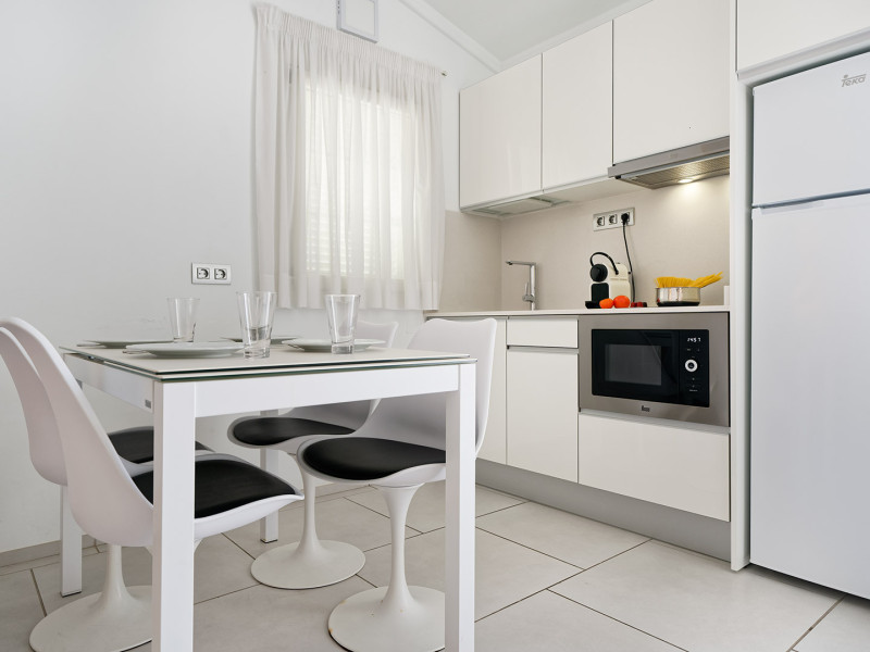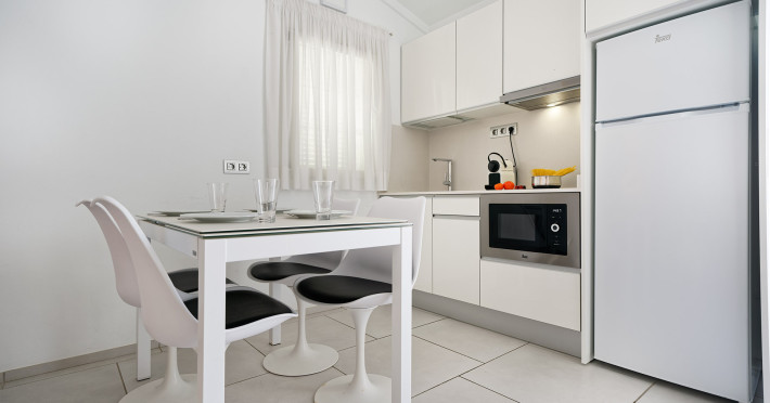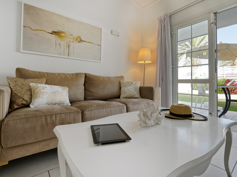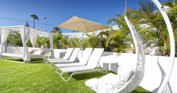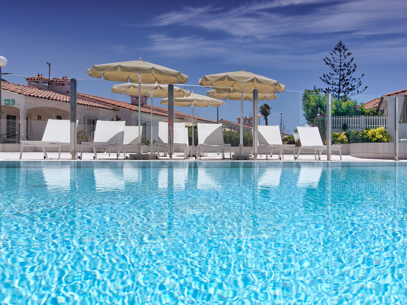 The aparthotel Bungalows Adonis is located approximately 500 m from a beach. The nearest bars and restaurants can be found at a distance of around 100 m. The city centre is around 1 km away. The nearest shops you can reach within around 200 m, a supermarket is around 300 m away. There is a shuttle service between the hotel and the airport. Nearby there is a disco which offers entertainment in high season. The air-conditioned hotel is equipped with a reception (check-in is possible around the clock), Wi-Fi, internet access, a first aid kit, parking spaces as well as a TV lounge with satellite TV. In the outdoor area of the property you will find a garden as well as a pool (open all year), where sun loungers, sun umbrellas and pool towels are available for free. Furthermore, you can relax outdoors on a terrace. You can store your valuables in the safe, and your luggage in the hotel`s storage room. In addition, the hotel Bungalows Adonis is video-monitored 24h a day. For very young guests, cots can also be provided. There is also a laundry and ironing service. The energy supply is 220 Volts. In addition, the hotel sells tickets for excursions. In your hotel, a lot of focus is placed on sustainability. This includes among others the provision of soap, shampoo and lotion dispensers. Euro/Master Card and Visa are accepted as means of payment. Distances