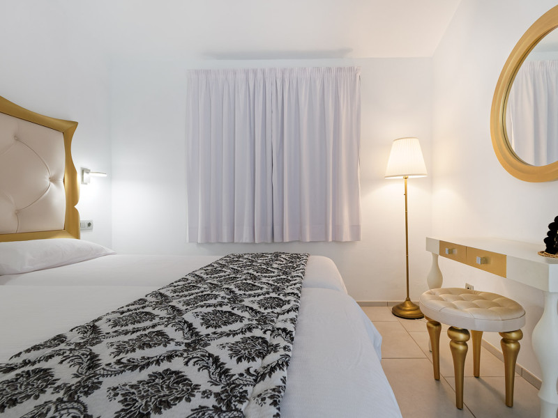 The aparthotel Bungalows Adonis is located approximately 500 m from a beach. The nearest bars and restaurants can be found at a distance of around 100 m. The city centre is around 1 km away. The nearest shops you can reach within around 200 m, a supermarket is around 300 m away. There is a shuttle service between the hotel and the airport. Nearby there is a disco which offers entertainment in high season. The air-conditioned hotel is equipped with a reception (check-in is possible around the clock), Wi-Fi, internet access, a first aid kit, parking spaces as well as a TV lounge with satellite TV. In the outdoor area of the property you will find a garden as well as a pool (open all year), where sun loungers, sun umbrellas and pool towels are available for free. Furthermore, you can relax outdoors on a terrace. You can store your valuables in the safe, and your luggage in the hotel`s storage room. In addition, the hotel Bungalows Adonis is video-monitored 24h a day. For very young guests, cots can also be provided. There is also a laundry and ironing service. The energy supply is 220 Volts. In addition, the hotel sells tickets for excursions. In your hotel, a lot of focus is placed on sustainability. This includes among others the provision of soap, shampoo and lotion dispensers. Euro/Master Card and Visa are accepted as means of payment. Distances- Nearest town: approximately at 50 km