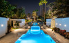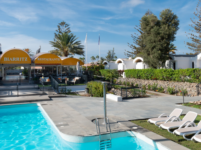 About 800 m from a sandy beach lies the accommodation Bungalows Cordial Biarritz. The nearest bars and restaurants can be found at a distance of around 400 m. The city centre is just a few steps away. The nearest shops you can reach within around 300 m, a supermarket is around 100 m away. The beach is patrolled by a lifeguard. Here, there are cushions and sun umbrellas for a fee available. Near the beach there is a promenade where you can go for a stroll. The air-conditioned hotel has a 24h reception (check-in is possible around the clock), a lobby, Wi-Fi, parking spaces as well as a TV lounge with satellite TV. In the outdoor area of the property you will find a garden as well as a heated pool that is open seasonally (open all year), where sun loungers are available for free. Furthermore, you can relax outdoors on a terrace. For the young hotel guests there is a playground. For very young guests, kid`s chairs can also be provided. You can store your luggage in the hotel's storage room. There is also a laundry service available at an additional cost to customers. Guests at the accommodation can get a wake-up call from the hotel personnel. If you want to explore the holiday region, you can use the car rental service close to the hotel (extra fee). In your hotel, a lot of focus is placed on sustainability. This includes among others the hotel`s own recycling bins. That is why the hotel Bungalows Cordial Biarritz was also awarded a sustainability certificate. Catering As catering services the hotel offers breakfast only and self-catering. Breakfast is offered continental or from the buffet. Enjoy your lunch à la carte. Dinner is served as a set meal or à la carte. Your physical well-being is catered for by a restaurant with terrace and the pool bar. Distances- Nearest town: approximately at 50 km