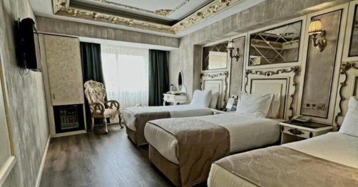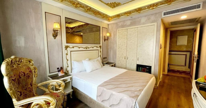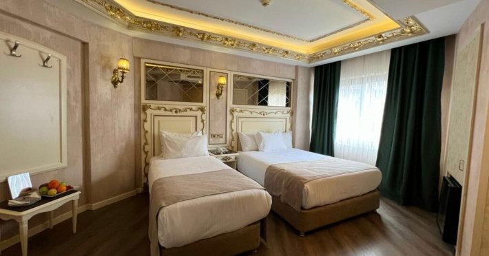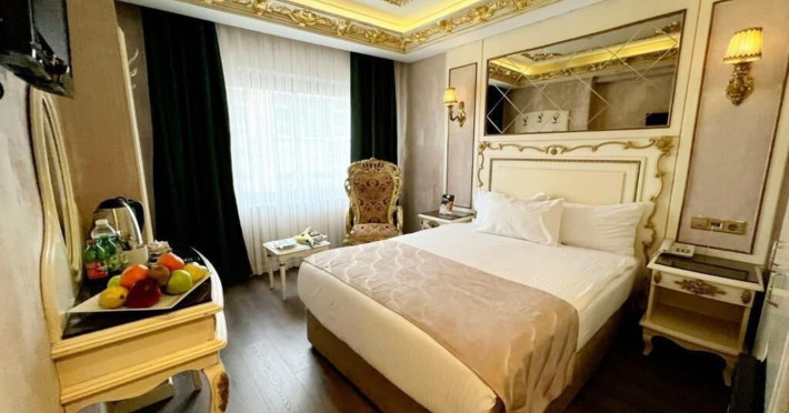 The accommodation Buyuk Hamit Hotel is situated approximately 45,7 km from the airport. There is a 24h shuttle service between the hotel and the airport (for a fee) 24h a day. The halal hotel has a 24h reception (check-in is possible around the clockThe accommodation Buyuk Hamit Hotel is situated approximately 45,7 km from the airport. There is a 24h shuttle service between the hotel and the airport (for a fee) 24h a day. The halal hotel has a 24h reception (check-in is possible around the clock), a lounge, a lobby, Wi-Fi, a lift as well as parking spaces (limited). Your valuables can be stored in the hotel safe. There is also a laundry service available at an additional cost to customers. Ironing equipment can be rented at the hotel for a fee. For your comfort the hotel page will ensure you are looked after. Guests at the accommodation can get a wake-up call from the hotel personnel. If you want to explore the holiday region, you can use the car rental service close to the hotel (extra fee). For guests on their honeymoon, the hotel has special offers such as flowers in the room. American Express and Visa are accepted as means of payment. Catering Dinner is served à la carte. As part of the all-inclusive service, coffee and tea (24h) are available around the clock and at no extra charge. Your physical well-being is catered for by a buffet restaurant. The drinks menu of the hotel includes water. Sports amp; Leisure A sauna awaits you for relaxation. Let yourself be pampered in the Hamam. Your little ones are in good hands with the hotels babysitter service. Additional information The hotel staff speak English, French, Arabic and Turkish.Datorita dinamicitatii domeniului disponibilitatea ofertelor se modifica de la un moment la altul. De aceea ofertele sunt valabile in limita locurilor disponibile. Agentia nu este responsabila pentru eventualele neconcordante care pot aparea intre informatiile privind tarifele si alte detalii din site si informatiile primite in agentie. In aceste cazuri vor avea prioritate, intotdeauna, informatiile primite in agentie.