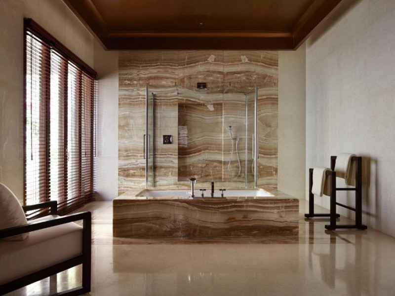 Vilele private, fiecare cu piscină proprie, oferă priveliști panoramice asupra oceanului. Resortul dispune de plajă privată cu nisip alb, accesibilă prin intermediul unui funicular exclusivist. Oaspeții au la dispoziție spa de lux, 3 restaurante rafinate și o piscină infinity cu vedere spre ocean.