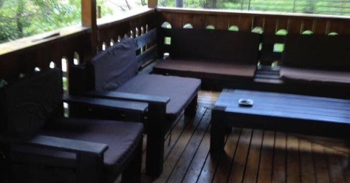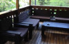 Cabana mai dispune de un living spatios dotat cu proiector pentru impatimitii de programe TV prin cablu, un coltisor de relaxare langa semineu precum si o sala de mese. In jurul cabanei prispa traditionala ofera un loc de discutii, relaxare sau luat masa.