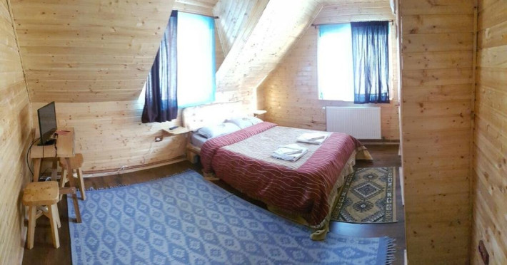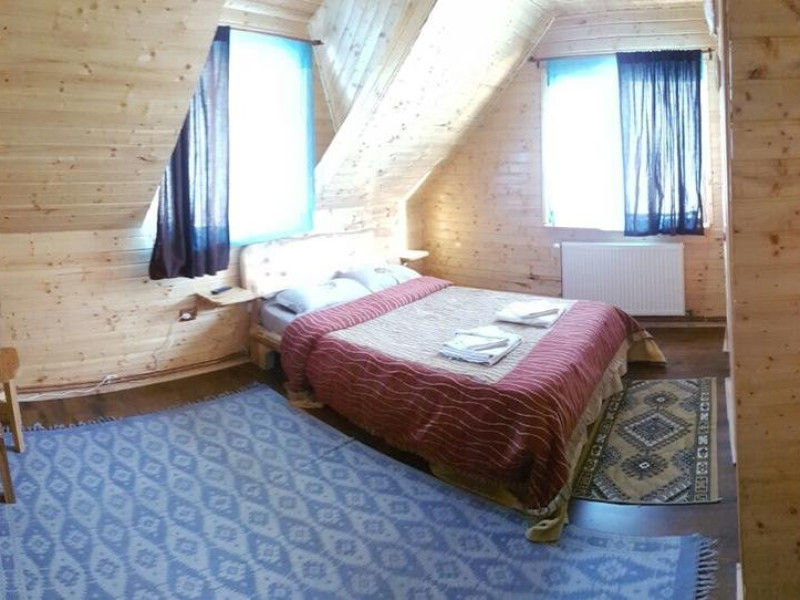 Camere dispun de bai individuale, sunt decorate rustic cu mobilier din lemn masiv si vedere la frumusetile naturii din jur care iti taie rasuflarea.