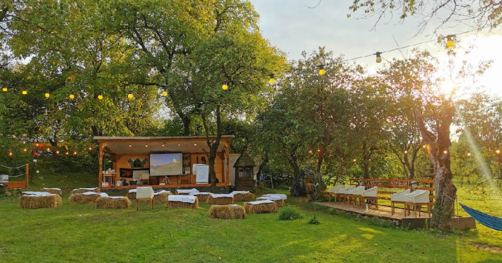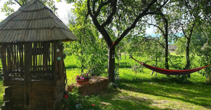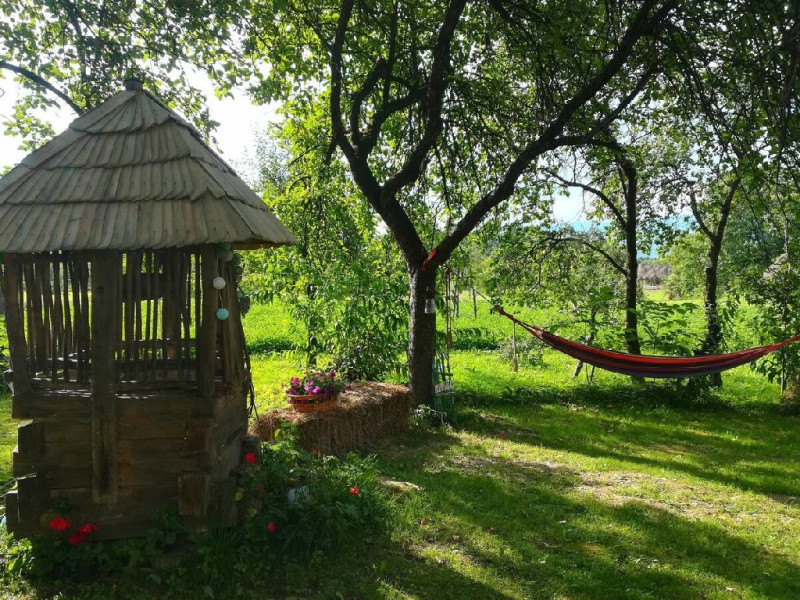 Locatia dispune de curtea rustica cu hamace si o fantana veche de lemn. Loc perfect pentru relaxare