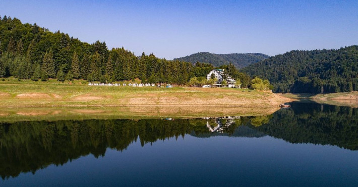 INFORMATII GENERALECabana Cumpana este situata pe malul stang al Lacului Vidraru, in comuna Arefu din judetul Arges la o altitudine de 860 m, cu o larga perspectiva asupra lacului Vidraru si a muntilor Fagaras.