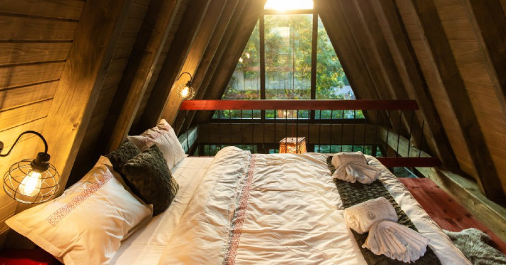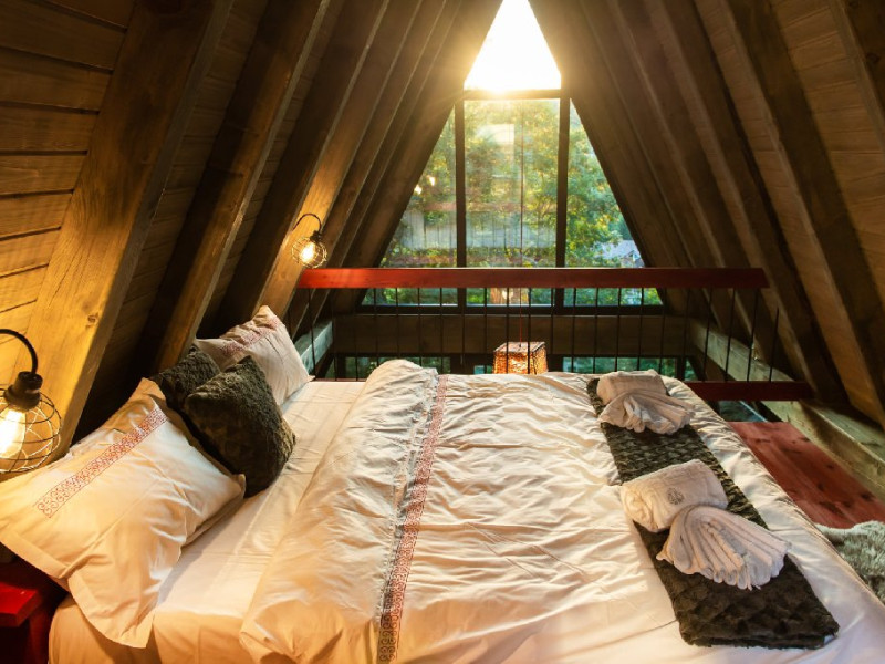 Doua casute de tip A va asteapta la Bran, intr-un peisaj de vis. O casuta poate gazdui 4 persoane, avand un dormitor open space in partea superioara, cu balcon interior si o canapea extensibila in partea de jos. Casuta dispune si de bucatarie, baie, loc de gratar si ceaun, loc pentru foc de tabara si ciubar. O sa aveti parte de o priveliste de vis catre Muntii Piatra Craiului, oferita de un perete integral din sticla al cabanei.Datorita dinamicitatii domeniului disponibilitatea ofertelor se modifica de la un moment la altul. De aceea ofertele sunt valabile in limita locurilor disponibile. Agentia nu este responsabila pentru eventualele neconcordante care pot aparea intre informatiile privind tarifele si alte detalii din site si informatiile primite in agentie. In aceste cazuri vor avea prioritate, intotdeauna, informatiile primite in agentie.