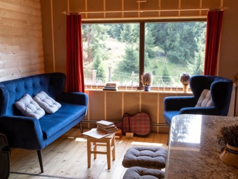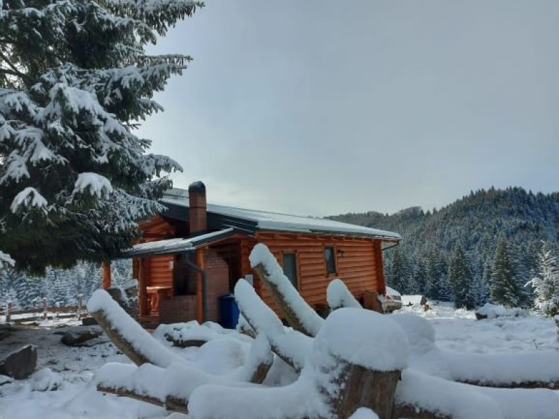 O caban echipat complet cu 2 camere, camer de zi, buctrie si o baie. Terenul aferent, loc de barbecue si loc de relaxare.