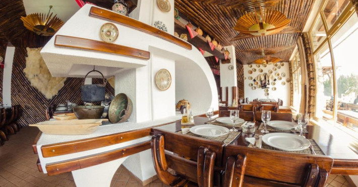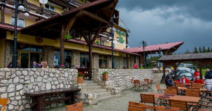 Restaurantul Cabanei Trei Brazi serveste preparate din bucătăria traditională romanească. Oaspetii se pot relaxa la barul din hol.