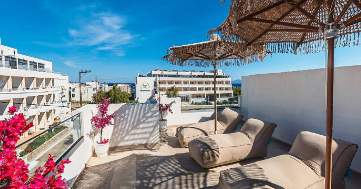 Situat in orasul Kardamena, in sudul insulei Kos, intr-o zona pitoreasca