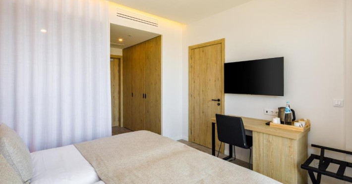 Dotari camera: Camerele si suitele hotelului sunt moderne si elegante, concepute pentru confortul adultilor. Toate unitatile dispun de aer conditionat, Wi-Fi gratuit, televizor, telefon si seif. Baile sunt dotate cu dus sau cada, uscator de par si articole de toaleta gratuite. Apartamentele si suitele includ balcon sau terasa mobilata, zone de relaxare si facilitati pentru prepararea ceaiului sau cafelei. Unele unitati au living separat cu canapea extensibila, bucatarie sau chicineta complet utilata si televizoare multiple, fiind potrivite pentru sejururi prelungite sau pentru cei care apreciaza mai mult spatiu.