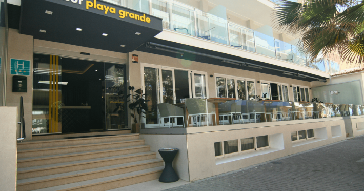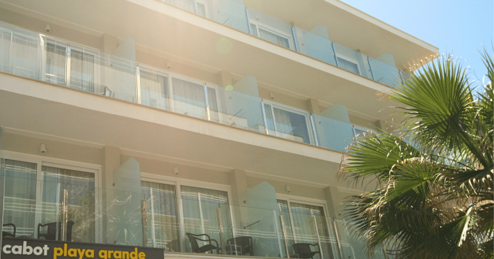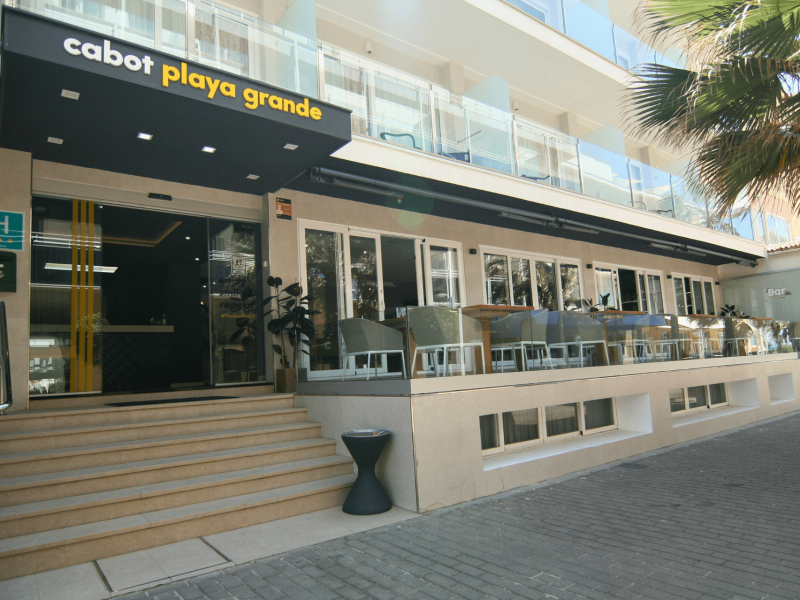 Just a few meters away from a public beach is located the aparthotel Cabot Playa Grande - Adults Only. The nearest restaurants and bars can be reached in a few minutes on foot. The old town is around 11,3 km away. A supermarket is around 450 m away. Nearby there is a theatre and a disco which offer entertainment in high season. The seasonally air-conditioned hotel has a 24h reception (check-in is possible around the clock), a lobby bar, Wi-Fi, internet access, a lift, a first aid kit as well as a TV lounge with satellite TV. Furthermore, you can relax outdoors on the terrace. You can store your luggage in the hotel's storage room. The energy supply is 220 Volts. In your hotel, a lot of focus is placed on sustainability. This includes among others a central room air-conditioning. American Express, Euro/Master Card and Visa are accepted as means of payment. Catering As catering services the hotel offers breakfast only. Breakfast is offered from the buffet. For the meals, there are a restaurant and a bar. Distances
