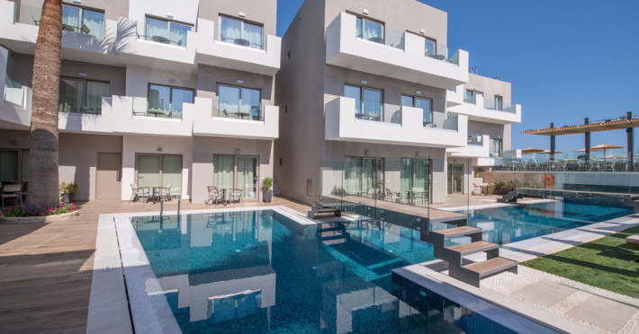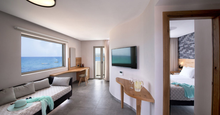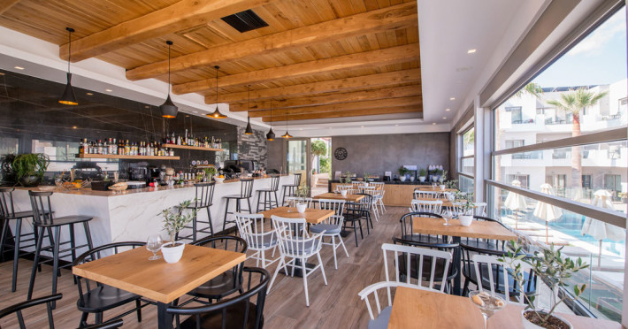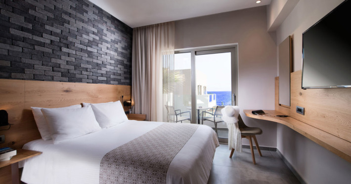 Camerele hotelului sunt decorate in nuanțe mediteraneene și oferă balcon sau terasă, majoritatea cu vedere spre grădină sau piscină. Te poți bucura de două piscine exterioare, una dintre ele special amenajată pentru copii, precum și de un restaurant principal cu preparate grecești și internaționale.