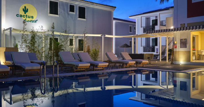The Cactus Hotel is located a mere one hundred meters away from a sandy beach in Laganas, one of the most popular tourist resorts in Zakynthos.Being one of the most cosmopolitan and developed resorts of Zakynthos, Laganas is particularly appealing to those seeking a lively and varied nightlife.The wide sandy beach (9 km long) is one of the largest beaches in Greece and its shallow water is especially ideal for children and water games.This beach is also home to the Caretta-Caretta turtles and consequently the cove of Laganas and its surrounding area are protected by the National Marine Park.Small boats offer short turtle-spotting trips from the beach to the cove of Laganas.The Cactus Hotel is the perfect choice for visitors of all ages and preferences. It is particularly popular with young people wanting to combine a relaxing location with easy access to local trendy nightspots.The Cactus Hotel is located a mere one hundred meters away from a sandy beach in Laganas, one of the most popular tourist resorts in Zakynthos.Being one of the most cosmopolitan and developed resorts of Zakynthos, Laganas is particularly appealing to those seeking a lively and varied nightlife.The wide sandy beach (9 km long) is one of the largest beaches in Greece and its shallow water is especially ideal for children and water games.This beach is also home to the Caretta-Caretta turtles and consequently the cove of Laganas and its surrounding area are protected by the National Marine Park.Small boats offer short turtle-spotting trips from the beach to the cove of Laganas.The Cactus Hotel is the perfect choice for visitors of all ages and preferences. It is particularly popular with young people wanting to combine a relaxing location with easy access to local trendy nightspots.