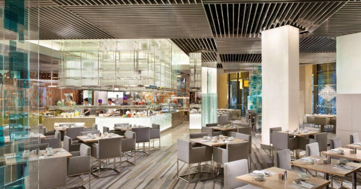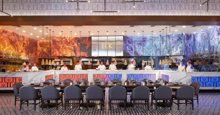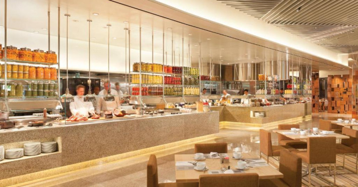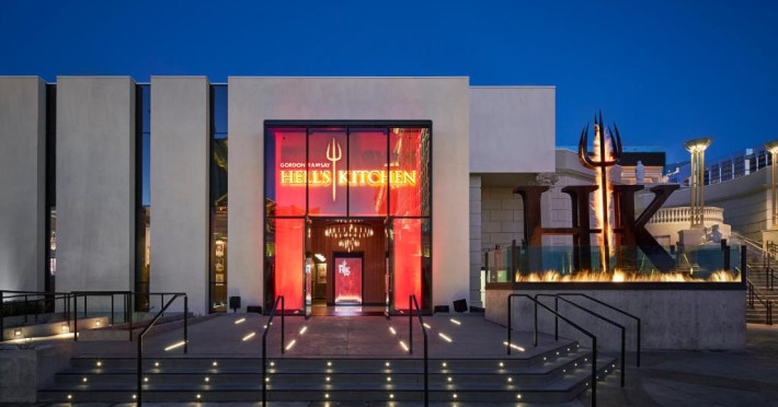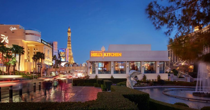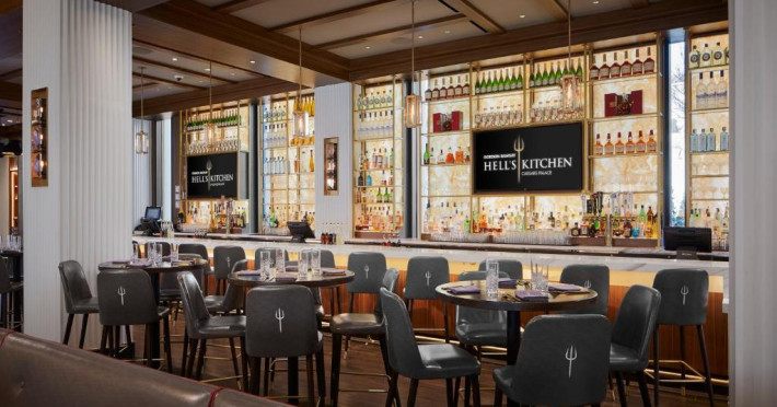 Opțiunile de luat masa includ Gordon Ramsay's Pub & Grill, Gordon Ramsay Hell's Kitchen, Mr. Chow și Restaurant Guy Savoy. Bufetul Bacchanal cu 500 de articole și opțiuni de luat masa informal, cum ar fi Beijing Noodle No. 9, sunt disponibile la proprietate.