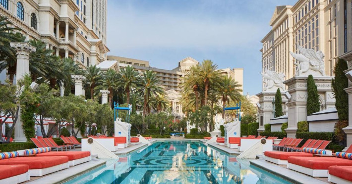 Acest hotel și cazinou de pe Las Vegas Strip oferă restaurante deținute de celebrități, The Forum Shops, un centru spa de lux și 7 piscine. Toate camerele oferă TV cu ecran plat cu canale prin cablu.